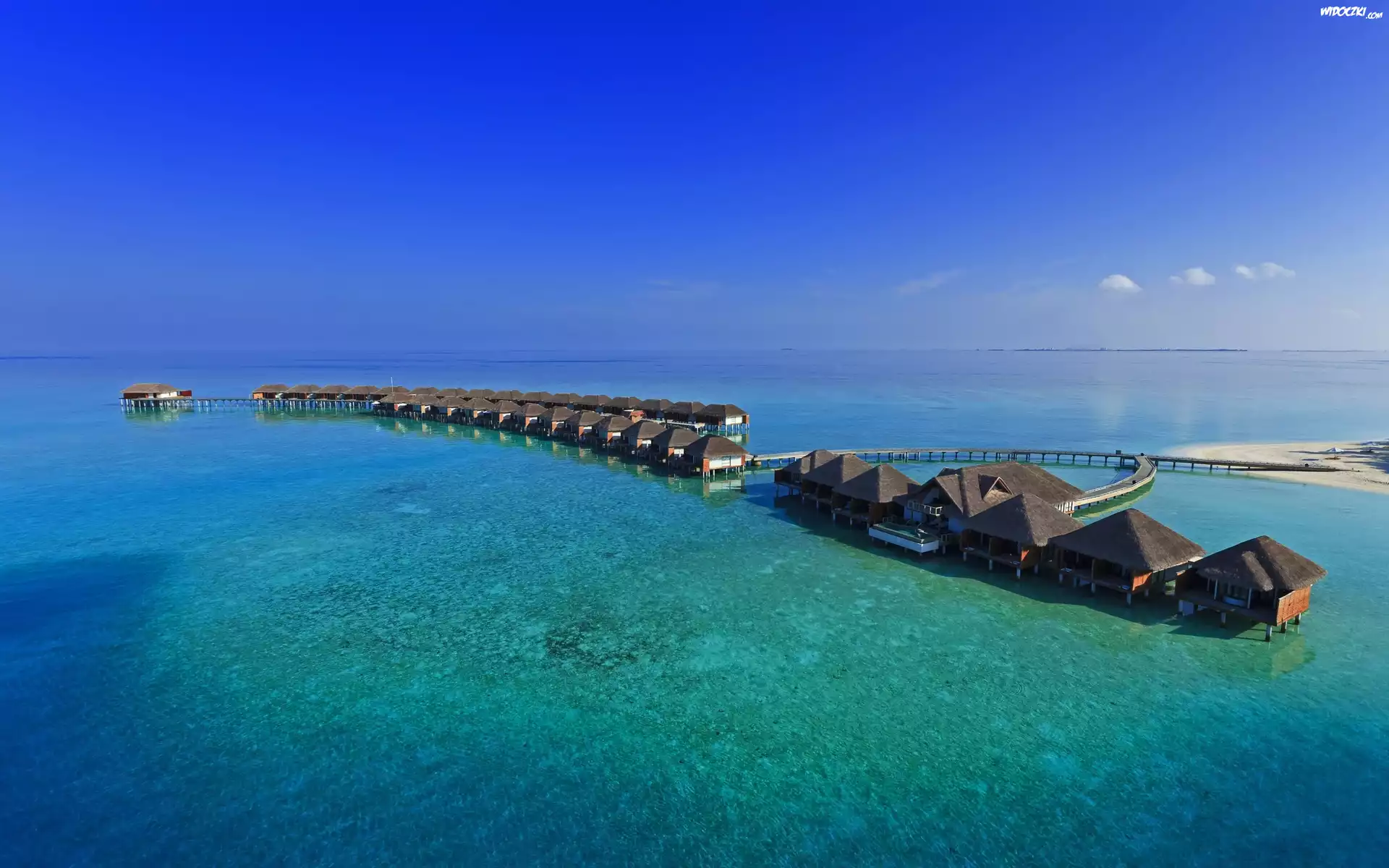 Zdjęcia, Domy, Na, Palach, Morze, Pomost, Plaża
