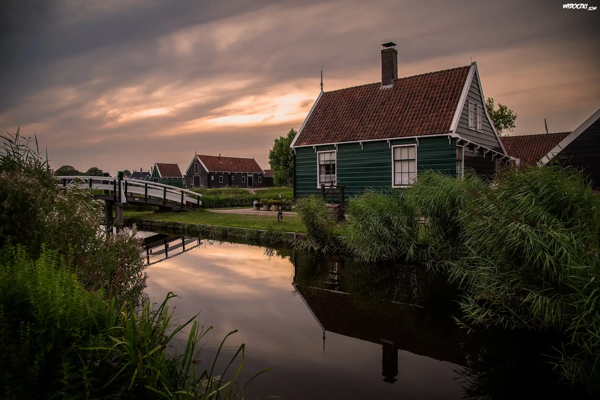 Zdjęcia, Domy, Most, Kanał, Rzeka, Skansen Zaanse Schans, Kinderdijk, Zaandam, Holandia