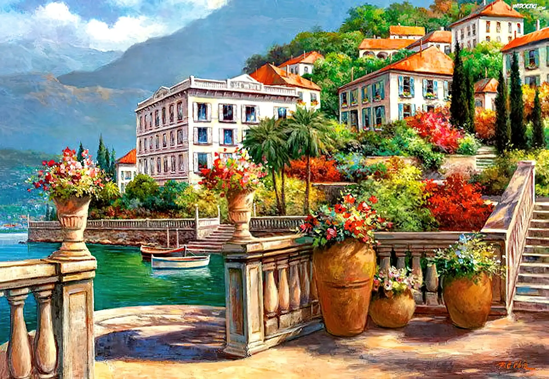 Domy, Morze, Taras, Kwiaty