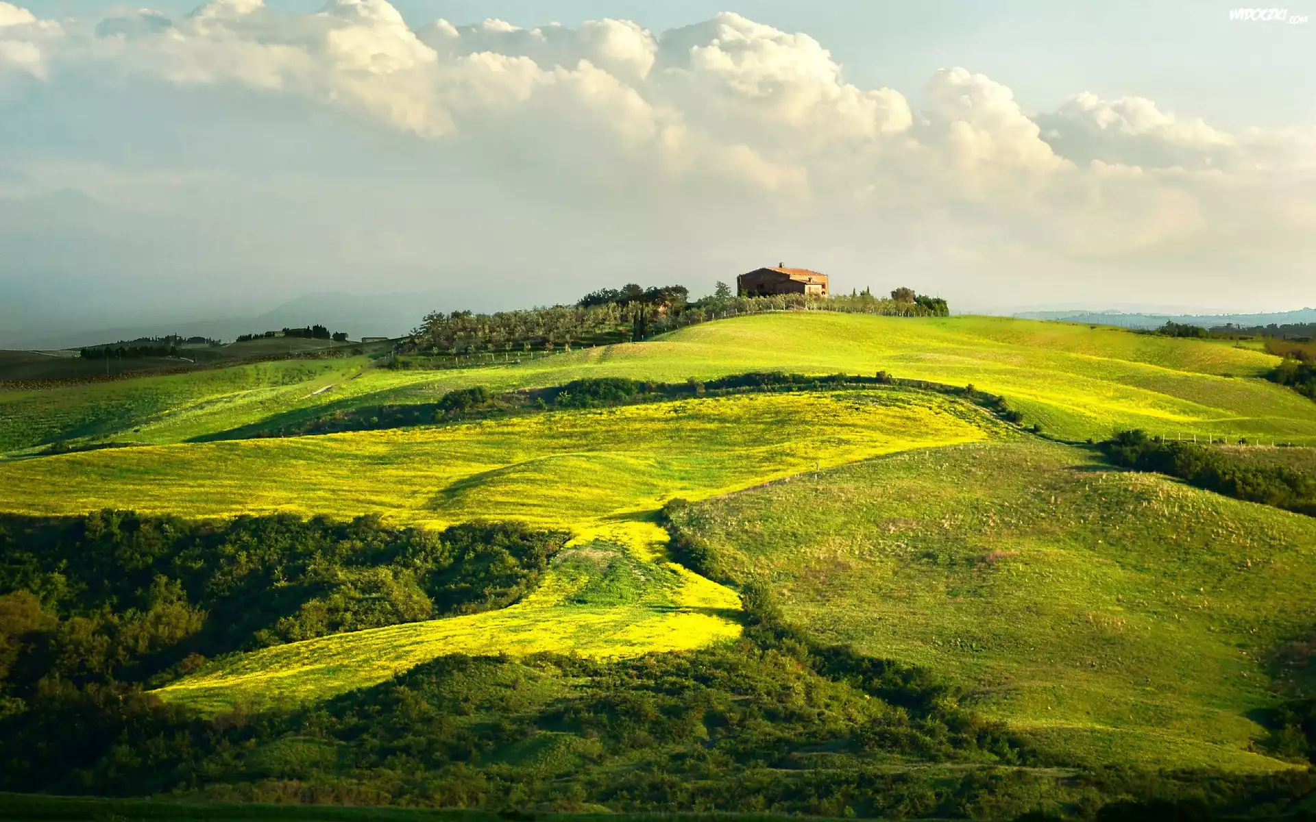 Winnica, Domy, Łąki, Drogi, Góry, Toskania, Włochy