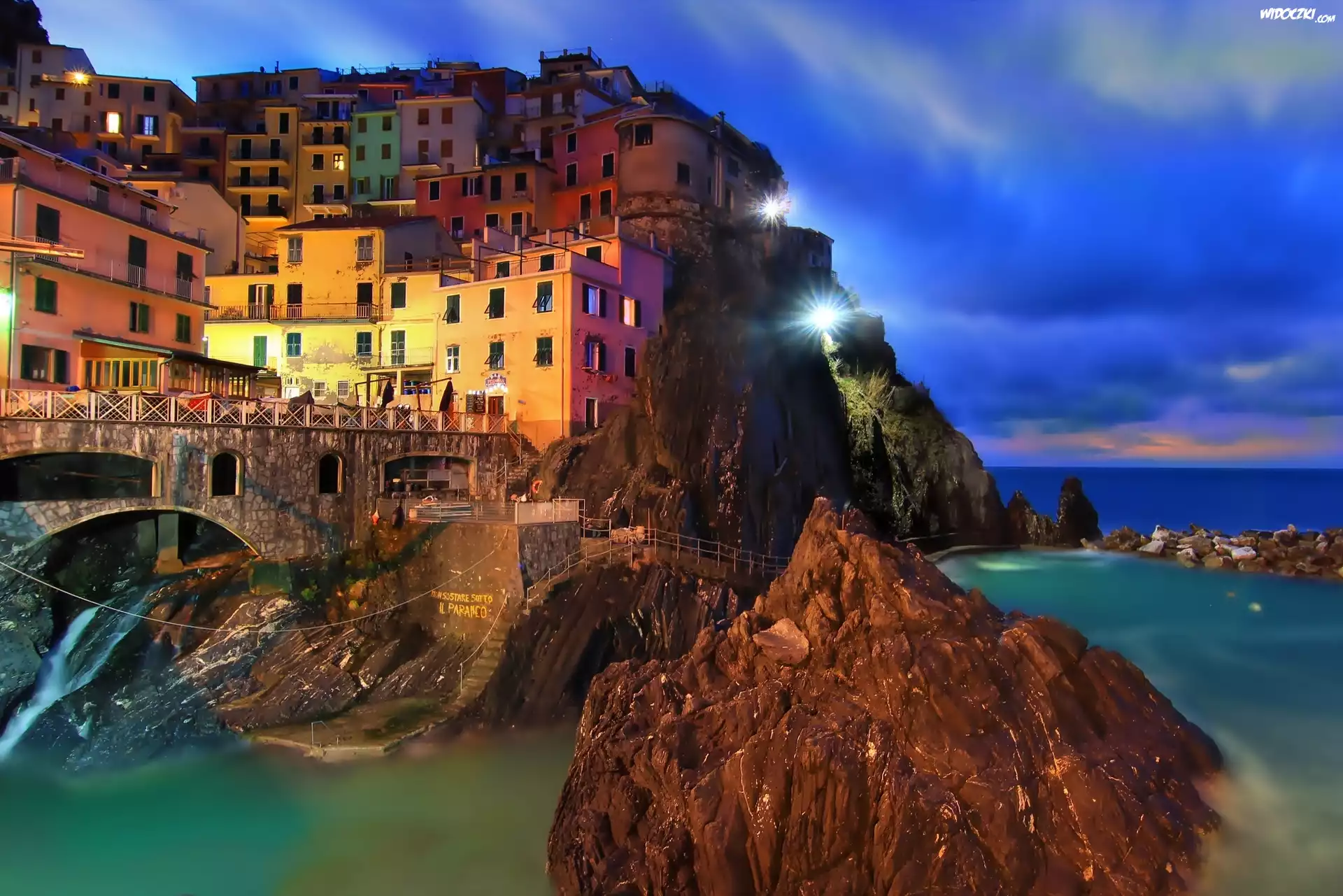 Zdjęcia, Domy, Morze, Skały, Włochy, Wybrzeże