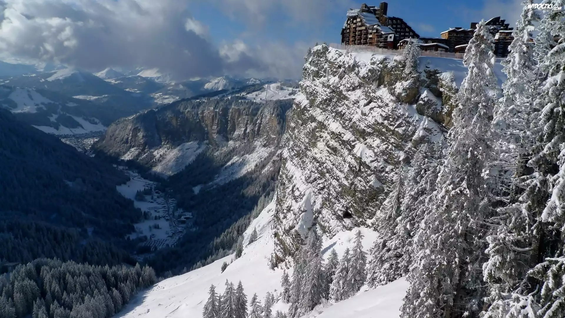 Zdjęcia, Góry, Domy, Na, Skale, Dolina, Lasy, Wioska, Zima
