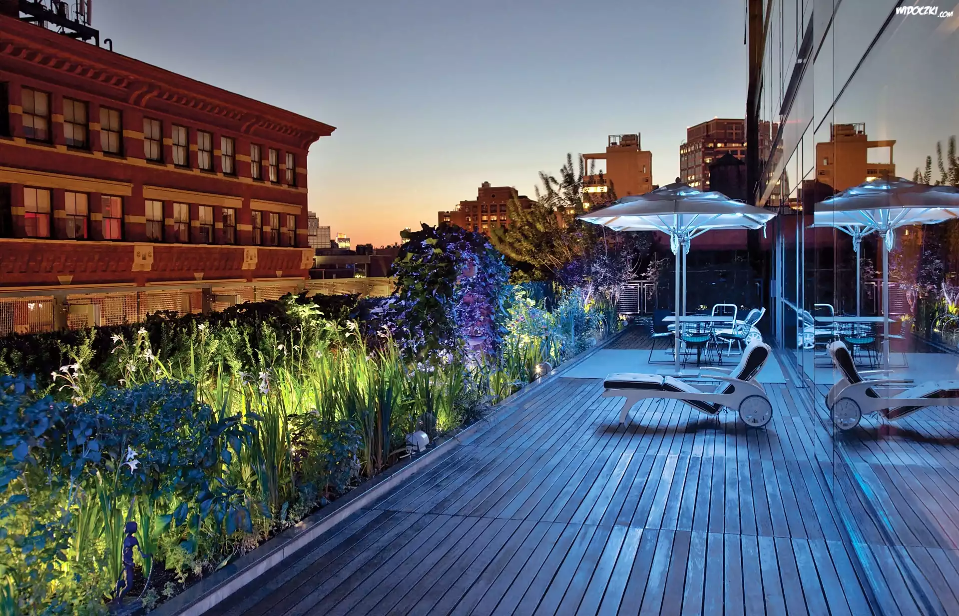 Manhattan, Drapacze, Chmur, Taras, Ogród, Na Dachu
