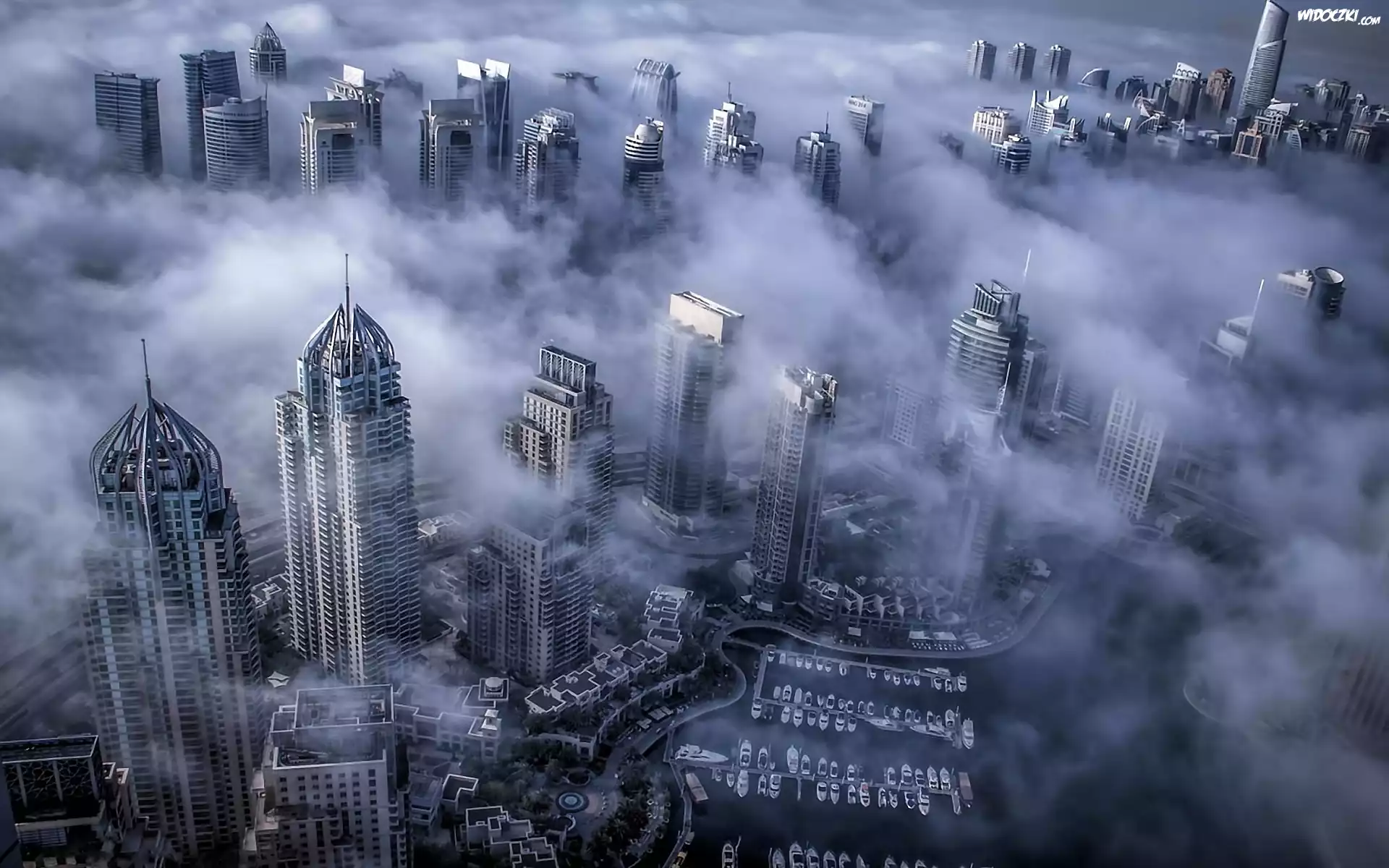 Drapacze, Chmur, Mgła, Port, Dubaj