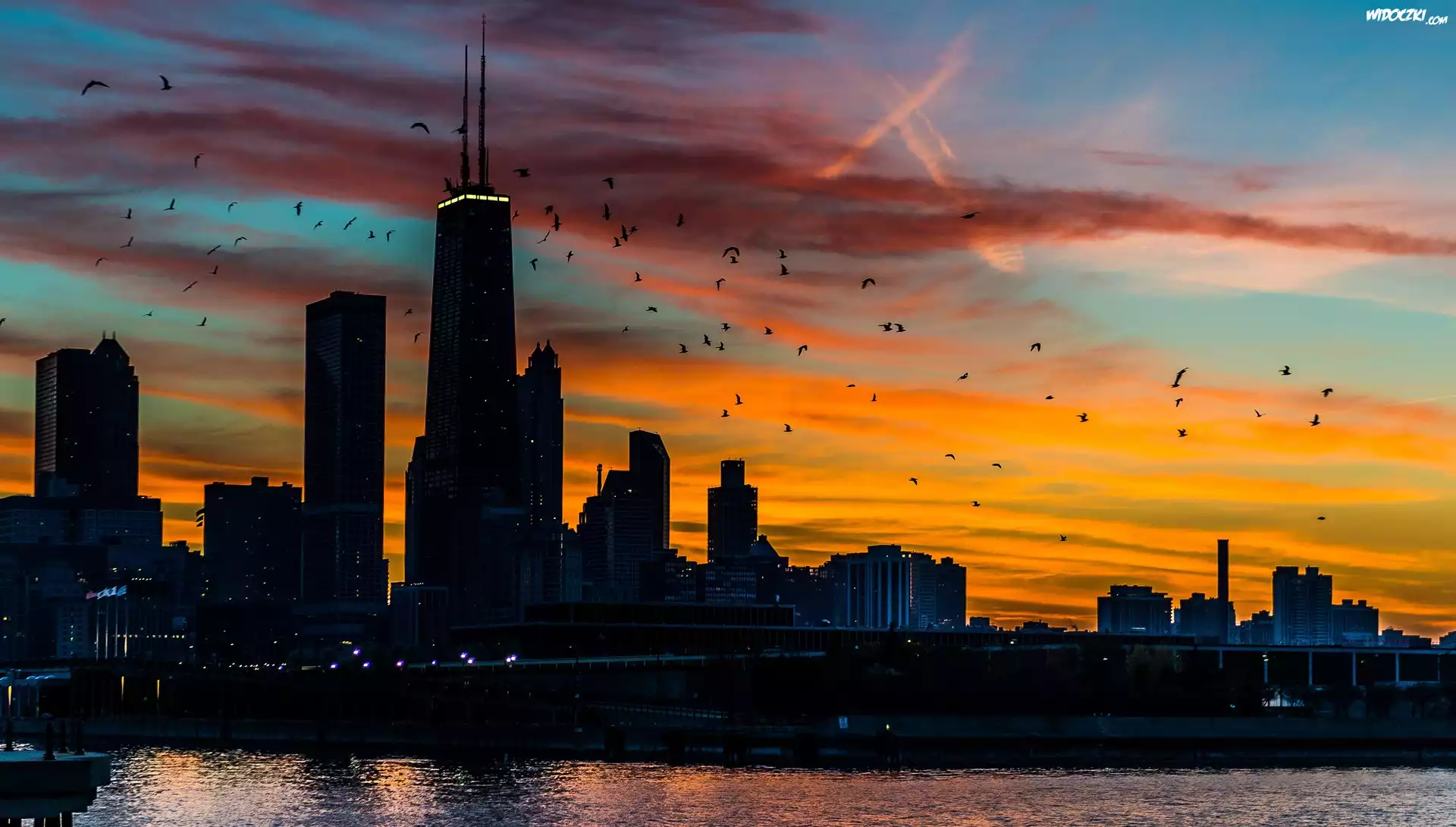 Drapacze Chmur, Zachód, Słońca, Ptaki