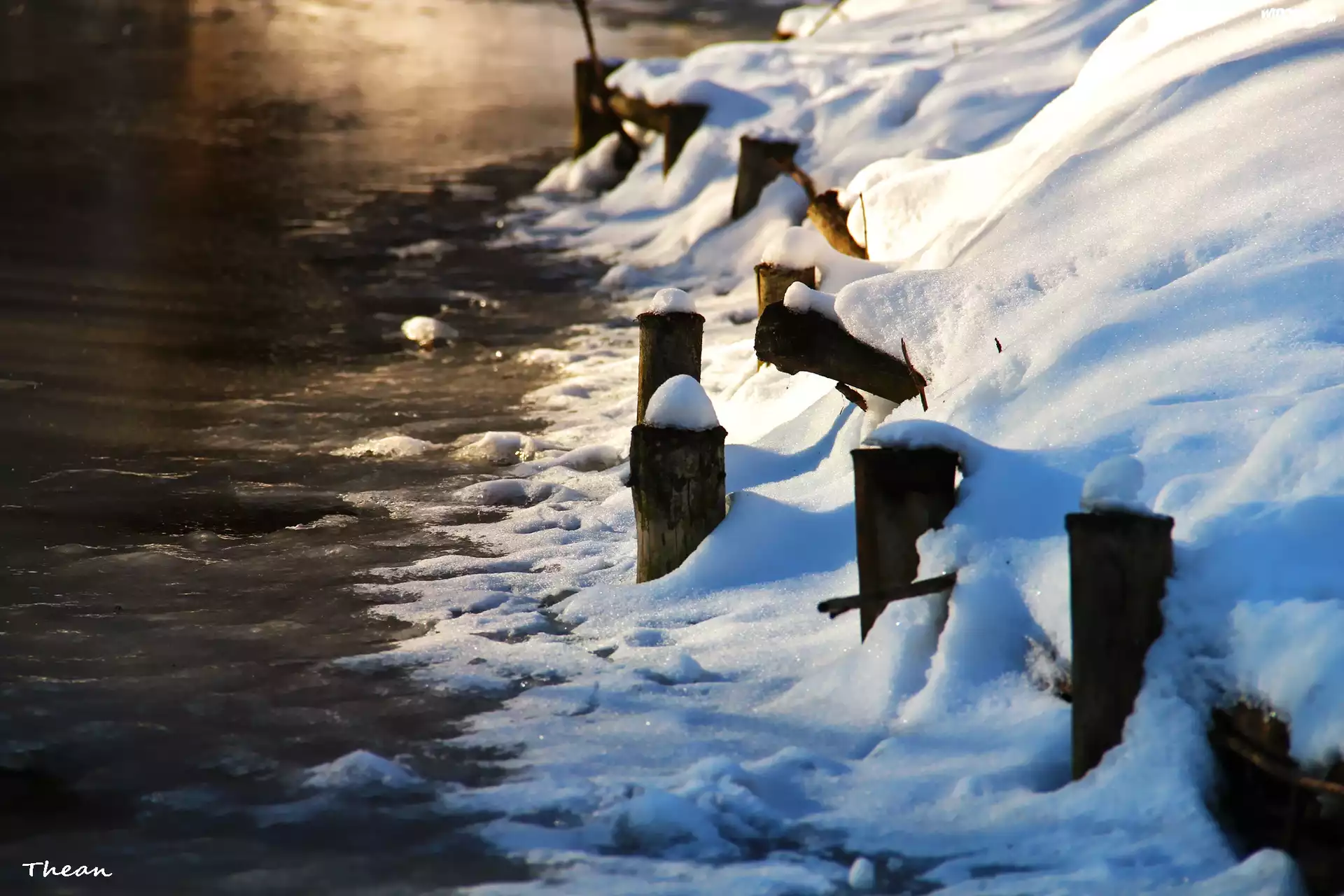 Śnieg, Brzeg, Jezioro, Drewniane, Kołki