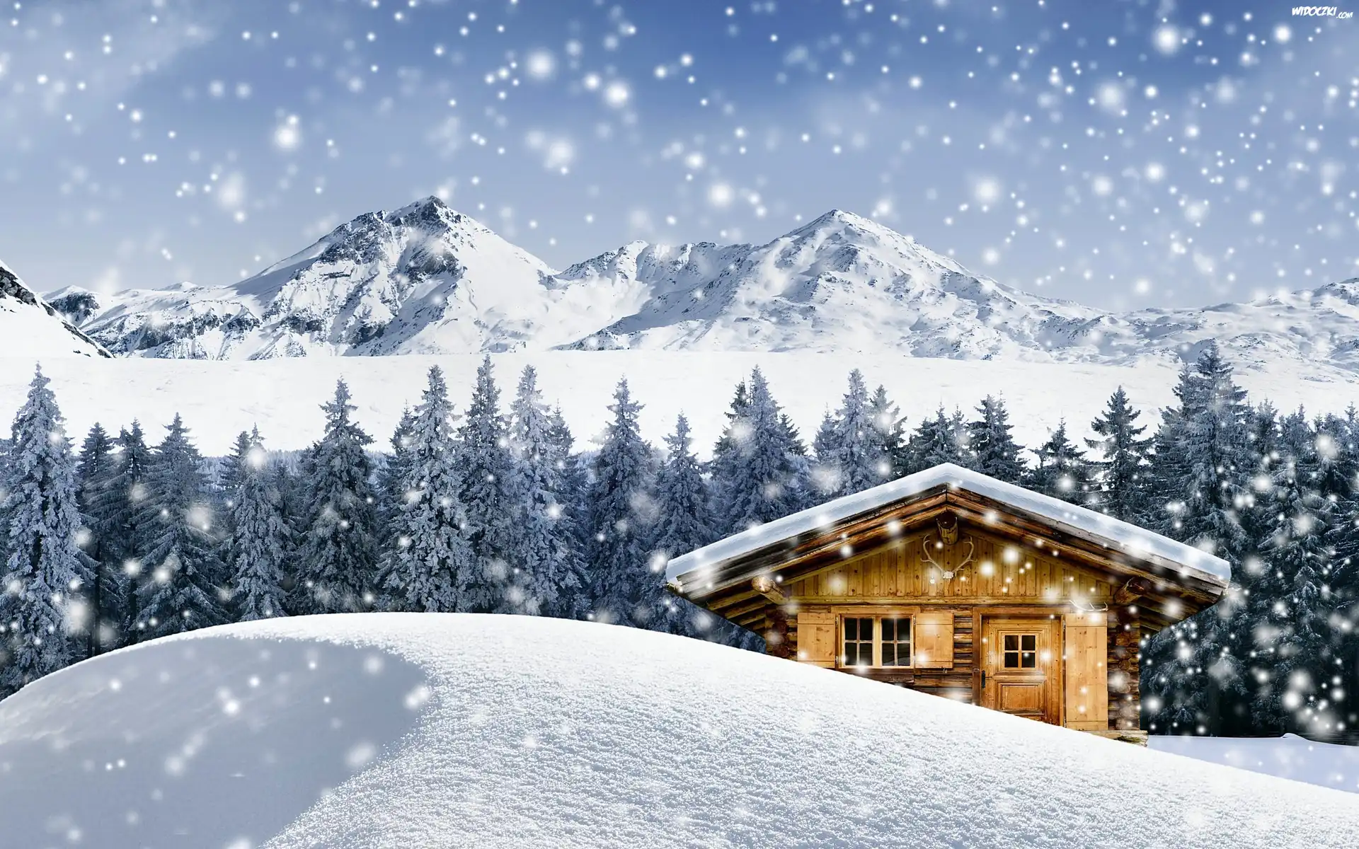 Zdjęcia, Drewniany, Domek, Zima, Góry, Las