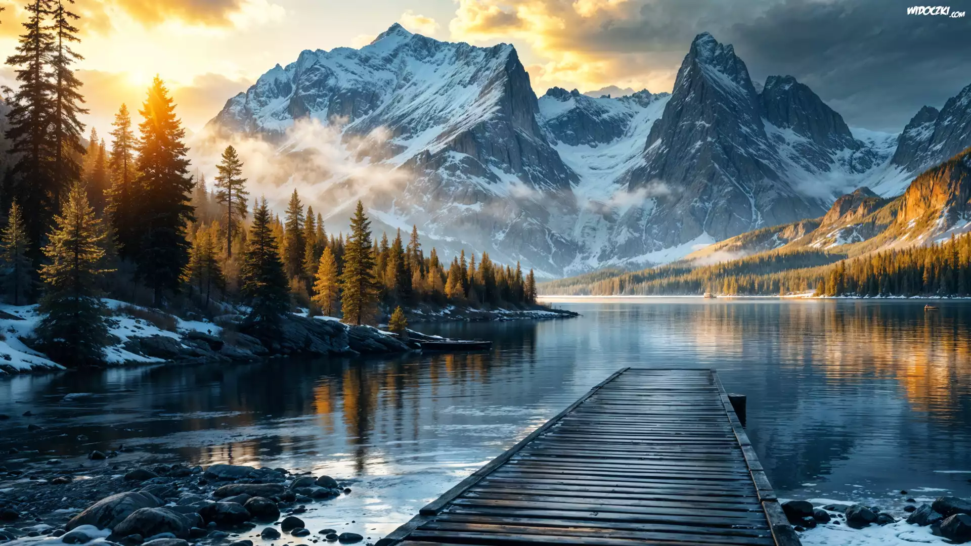Zdjęcia, Góry, Drewniany, Pomost, Jezioro, Drzewa
