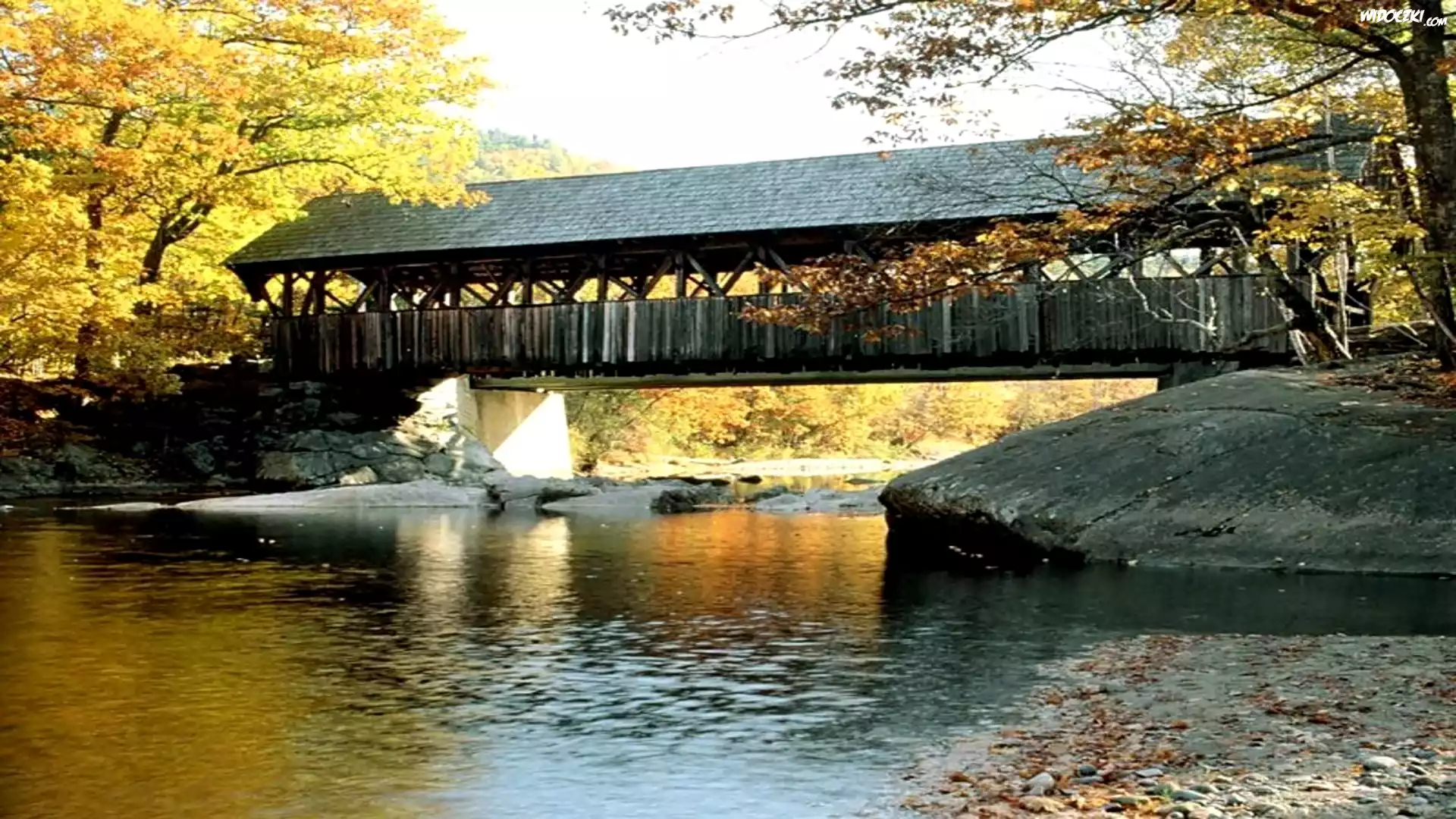 Zdjęcia, Drewniany Most, rzeczka, Jesień