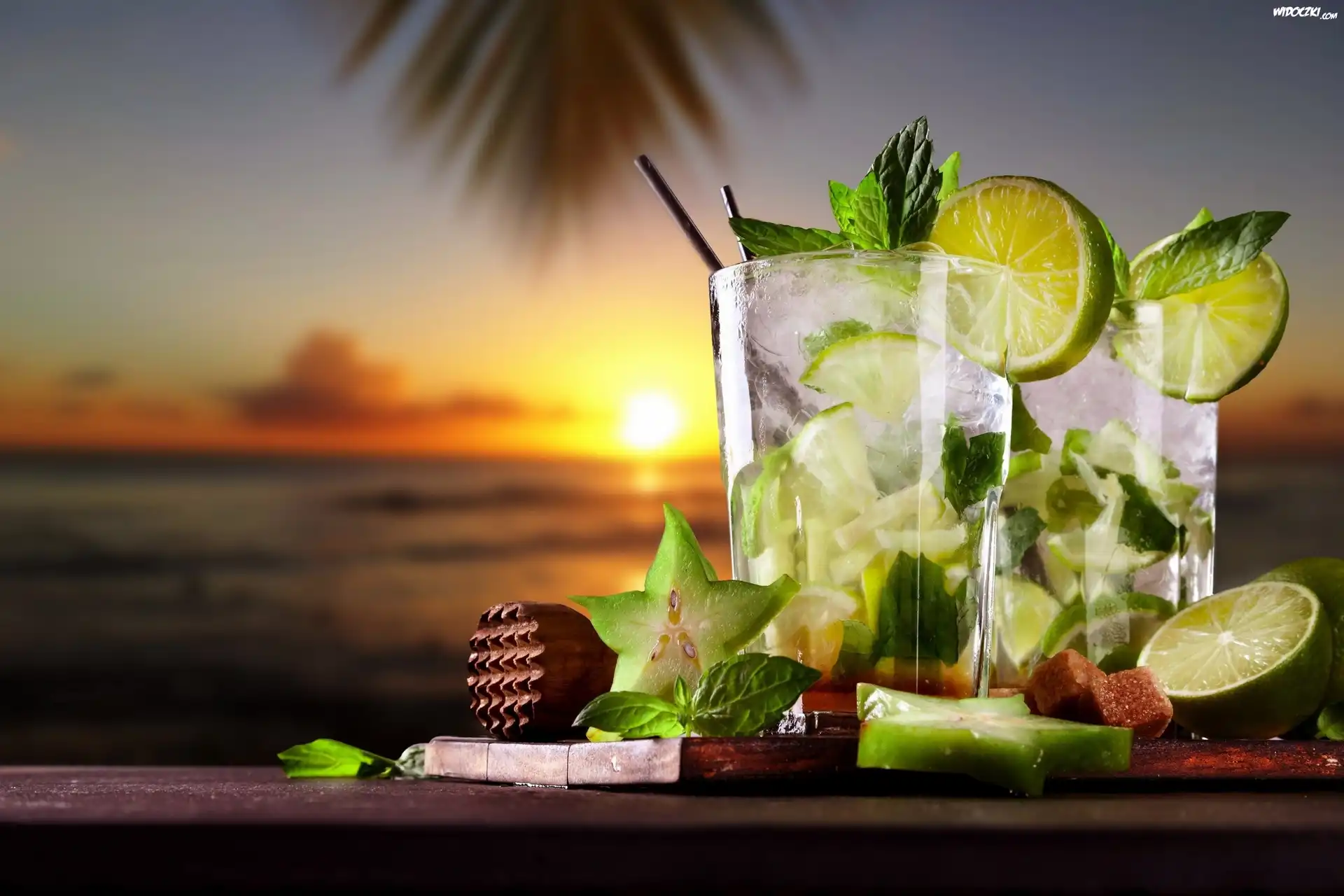 Zdjęcia, Drinki, Mojito, Zachód Słońca
