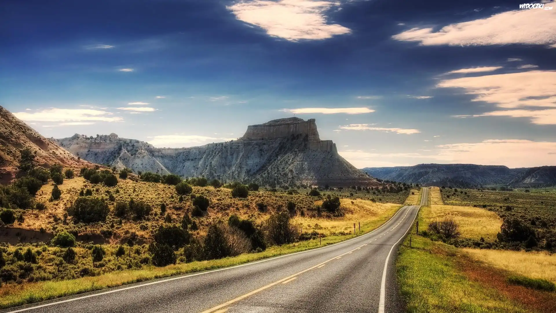 G贸ra G贸ra G贸ra, Zachody 艢艂o艅ca G贸ra G贸ra Droga, Las, Drzewa Jesienne, Drzewa, Pole, P艂otek, Dr贸偶ka G贸ra, Ska艂y Wiejska, Dr贸偶ka, Pola, Drzewa Droga, Przez, Las Droga, K艂臋biaste, Chmury G贸ra Droga, Znak Droga, G臋stwina, Drzew, Krzew贸w