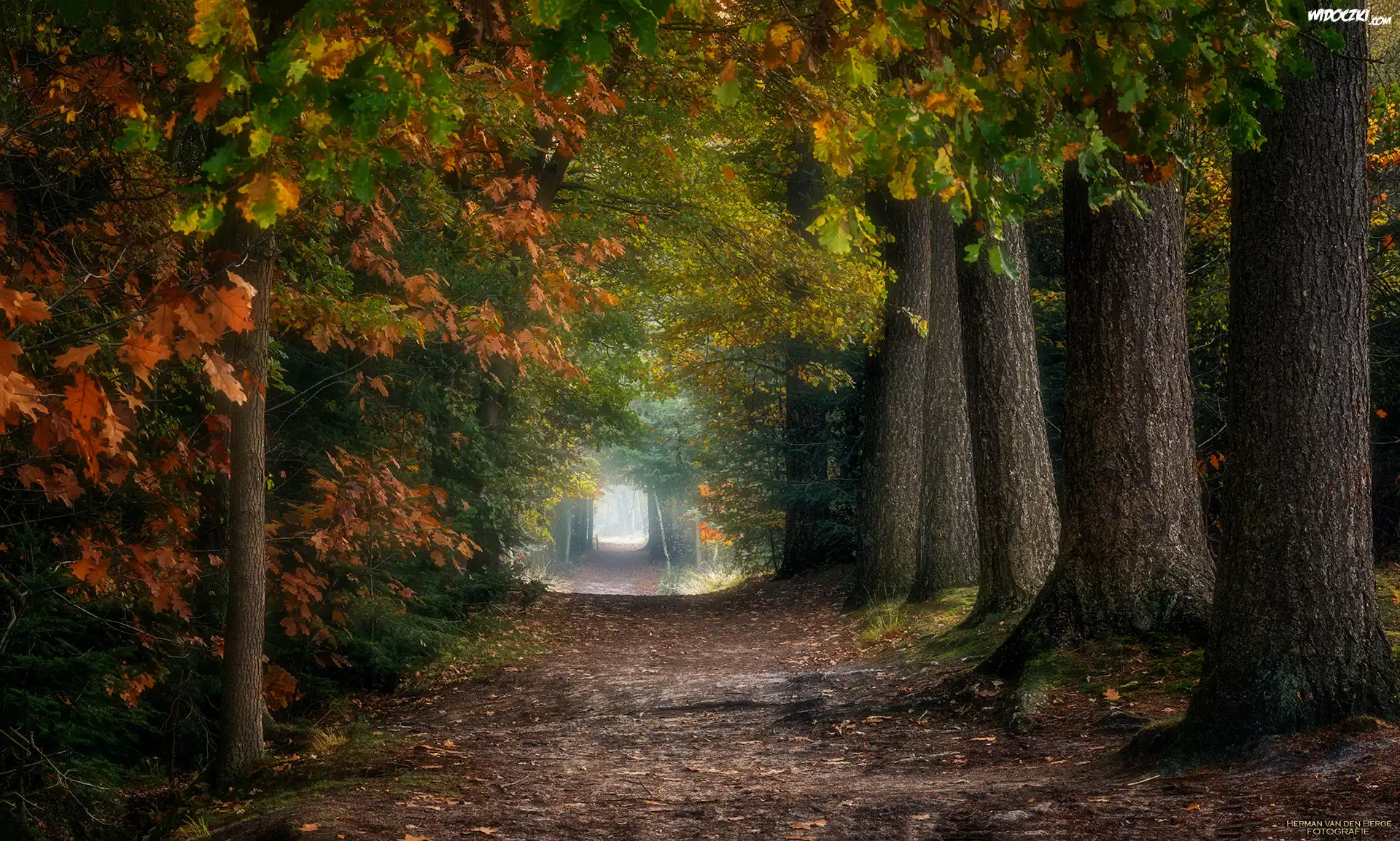 Zdjęcia, Holandia, Północna Brabancja, Miasto Breda, Las Mastbos, Jesień, Drzewa, Droga