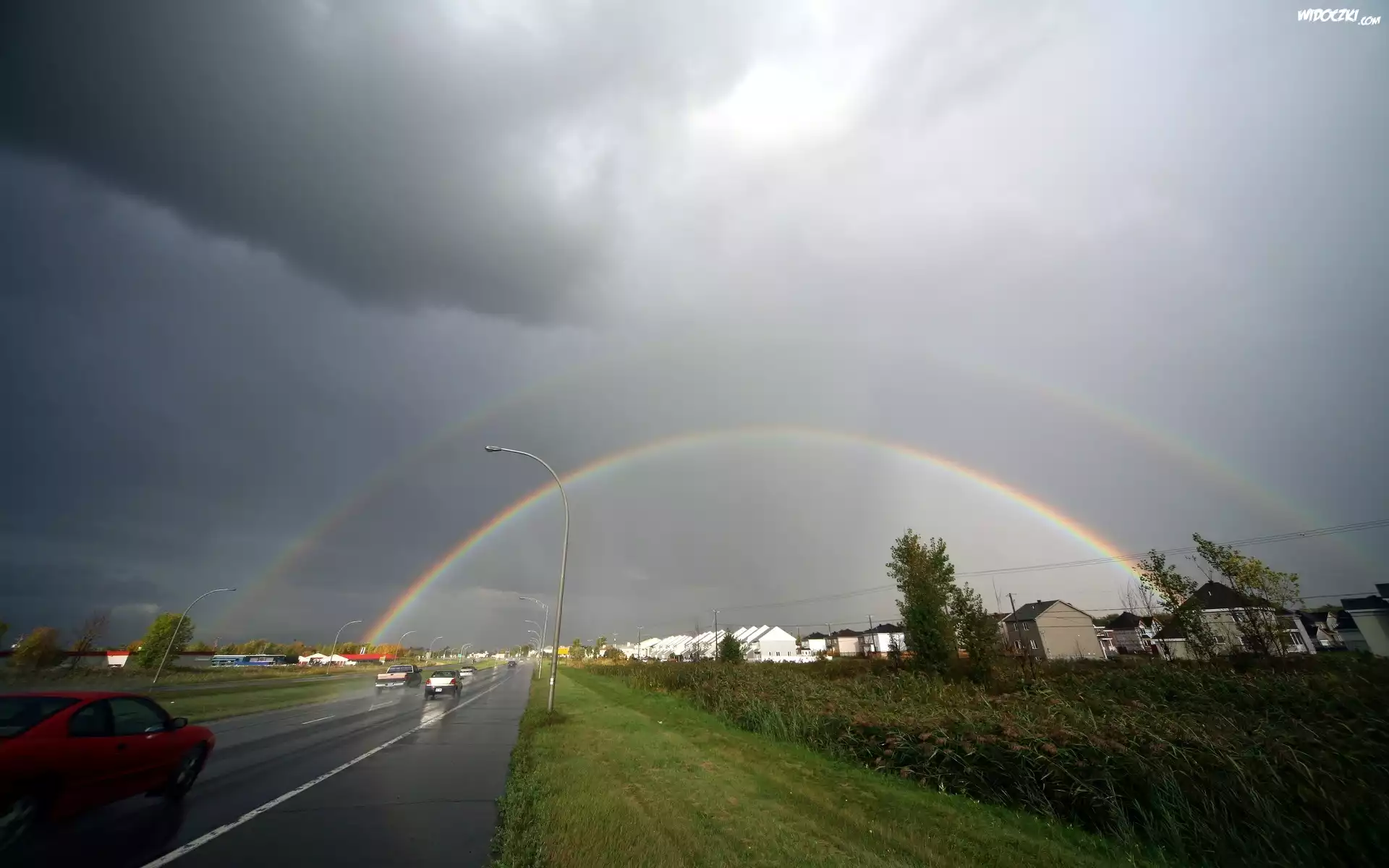 Zdjęcia, Droga, Burza, Chmury, Tęcze