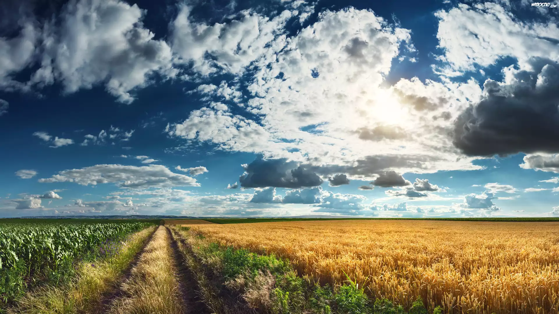 Zdj臋cia, Droga, Pole, Chmury, Niebo