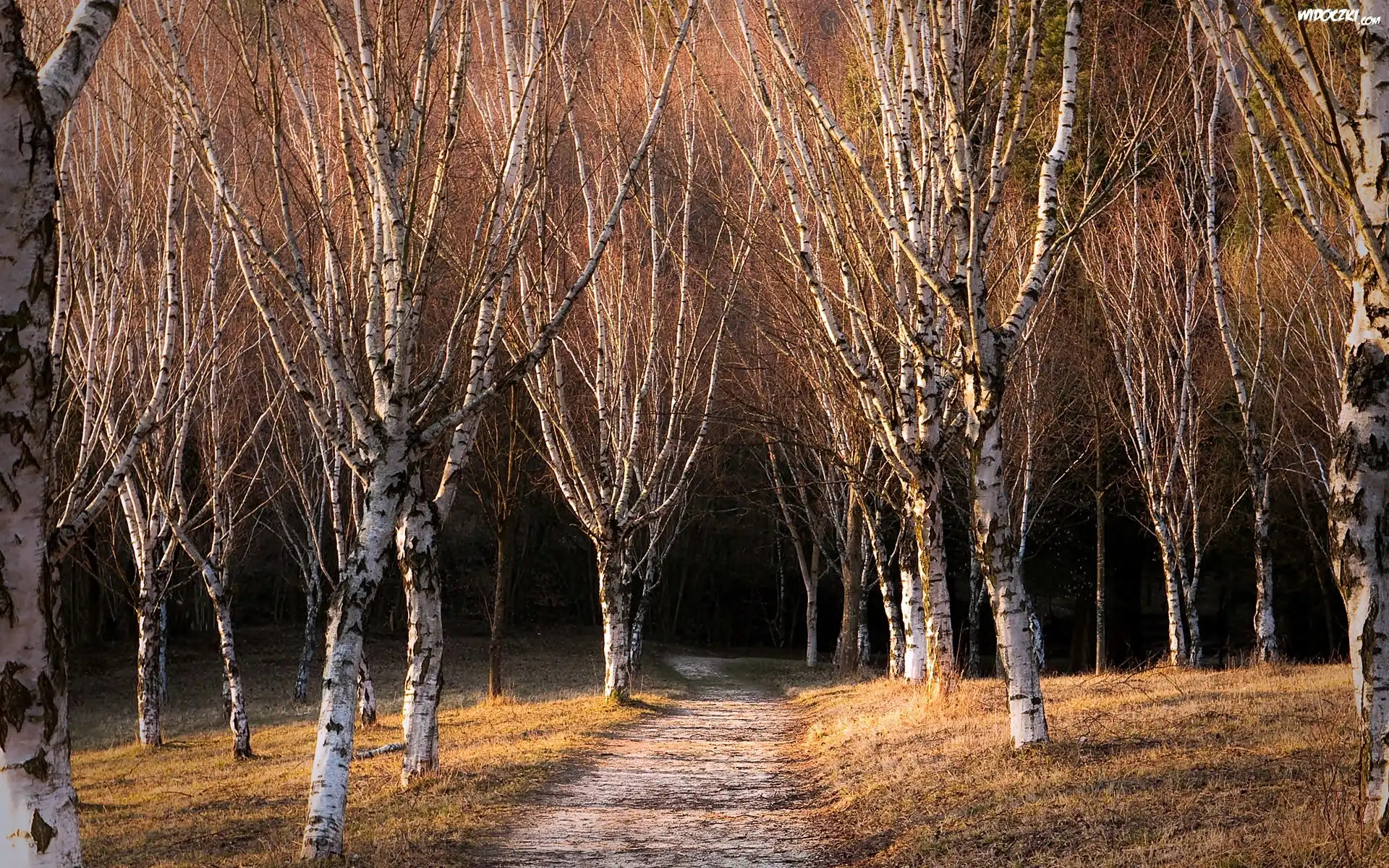 Zdjęcia, Droga, Brzozy, Ciemny, Las