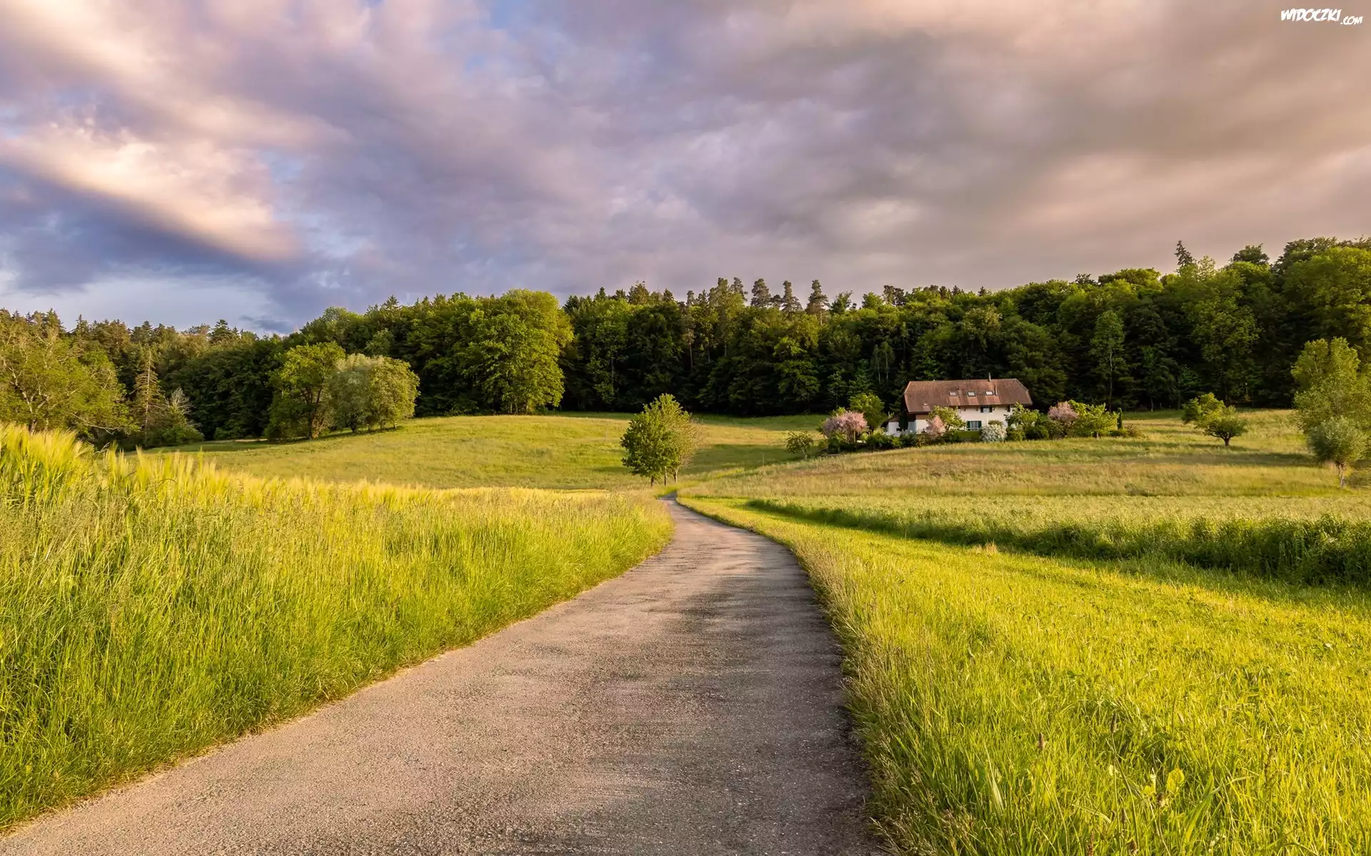 Zdjęcia, Polna, Droga, Dom, Drzewa, Pole