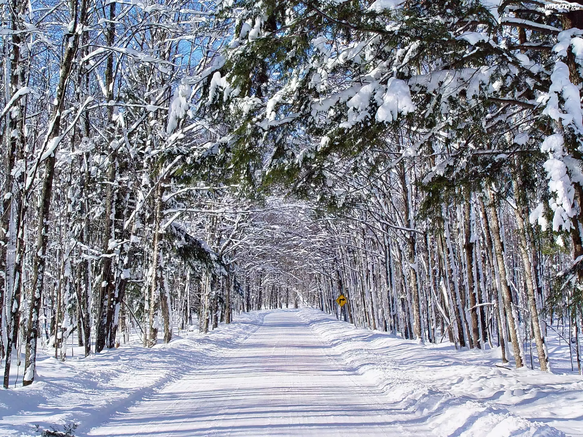 Zdjęcia, Droga, Szpaler, Drzew, Zima