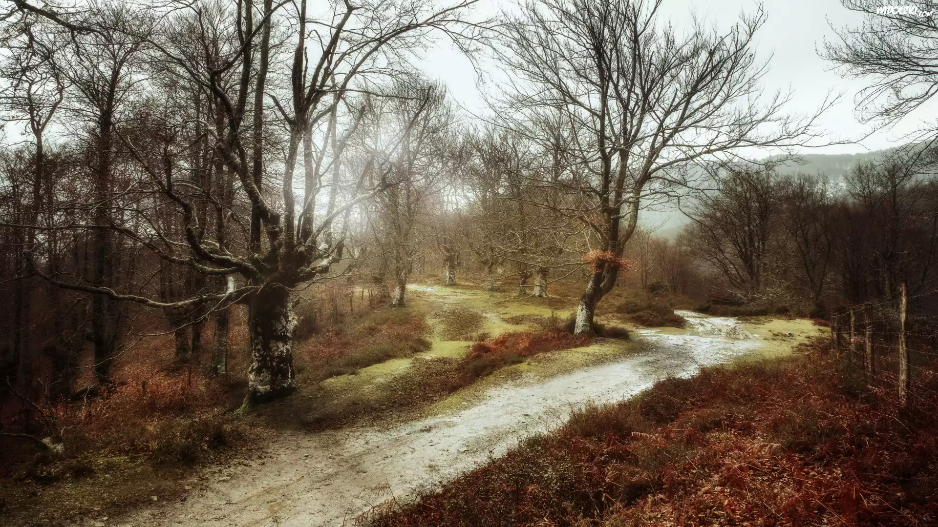 Zdjęcia, Droga, Bezlistne, Drzewa, Jesień