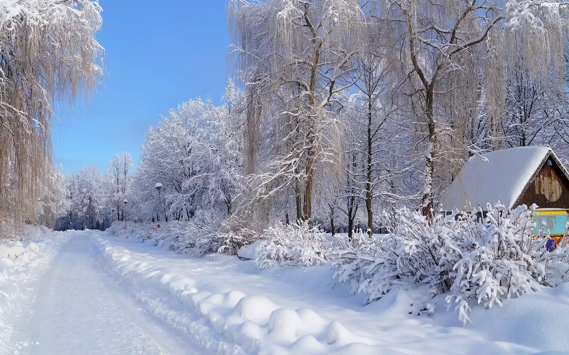 Zdjęcia, Droga, Dom, Drzewa, Zima