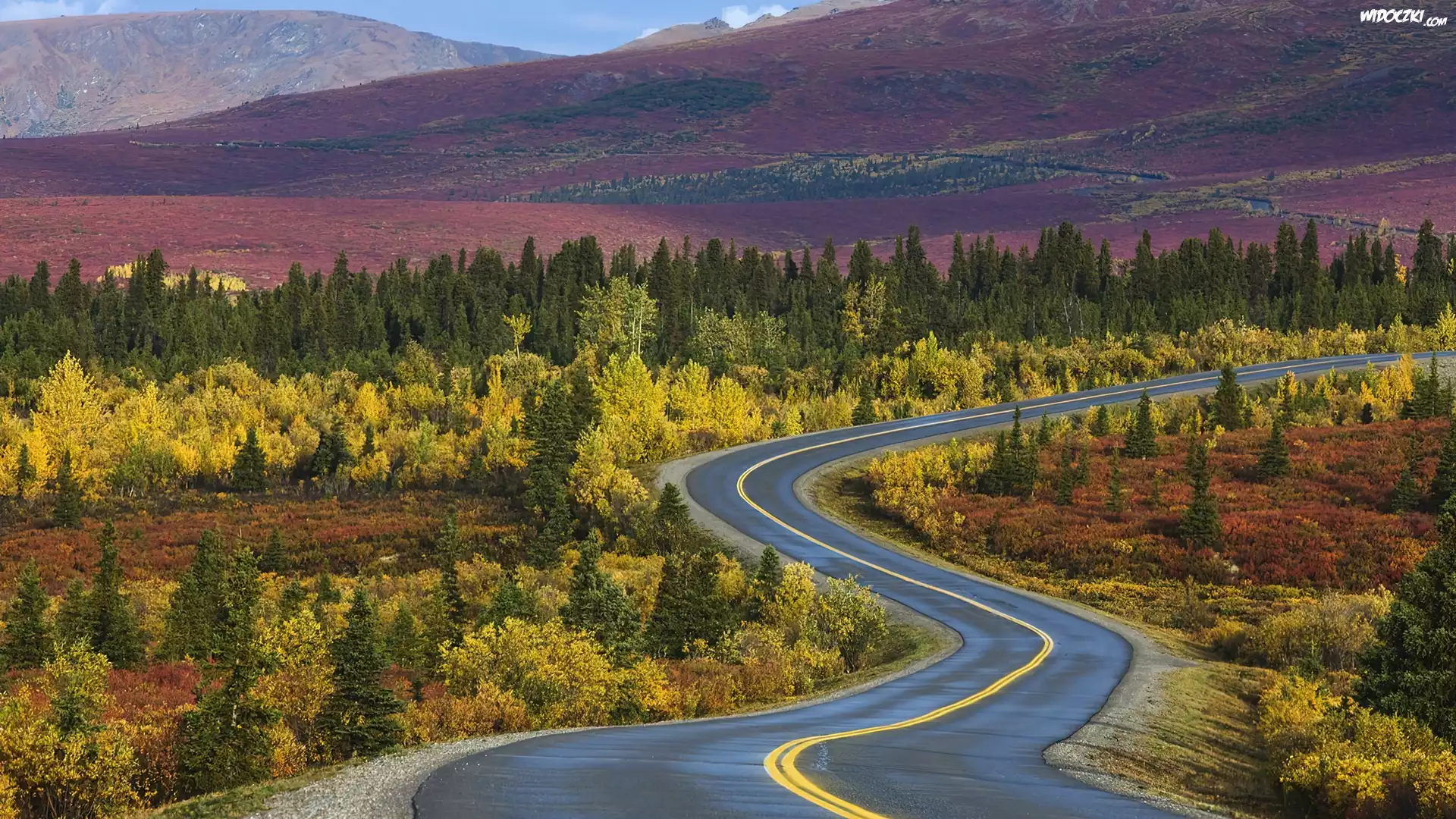 Zdjęcia, Droga, Las, Drzewa, Góry