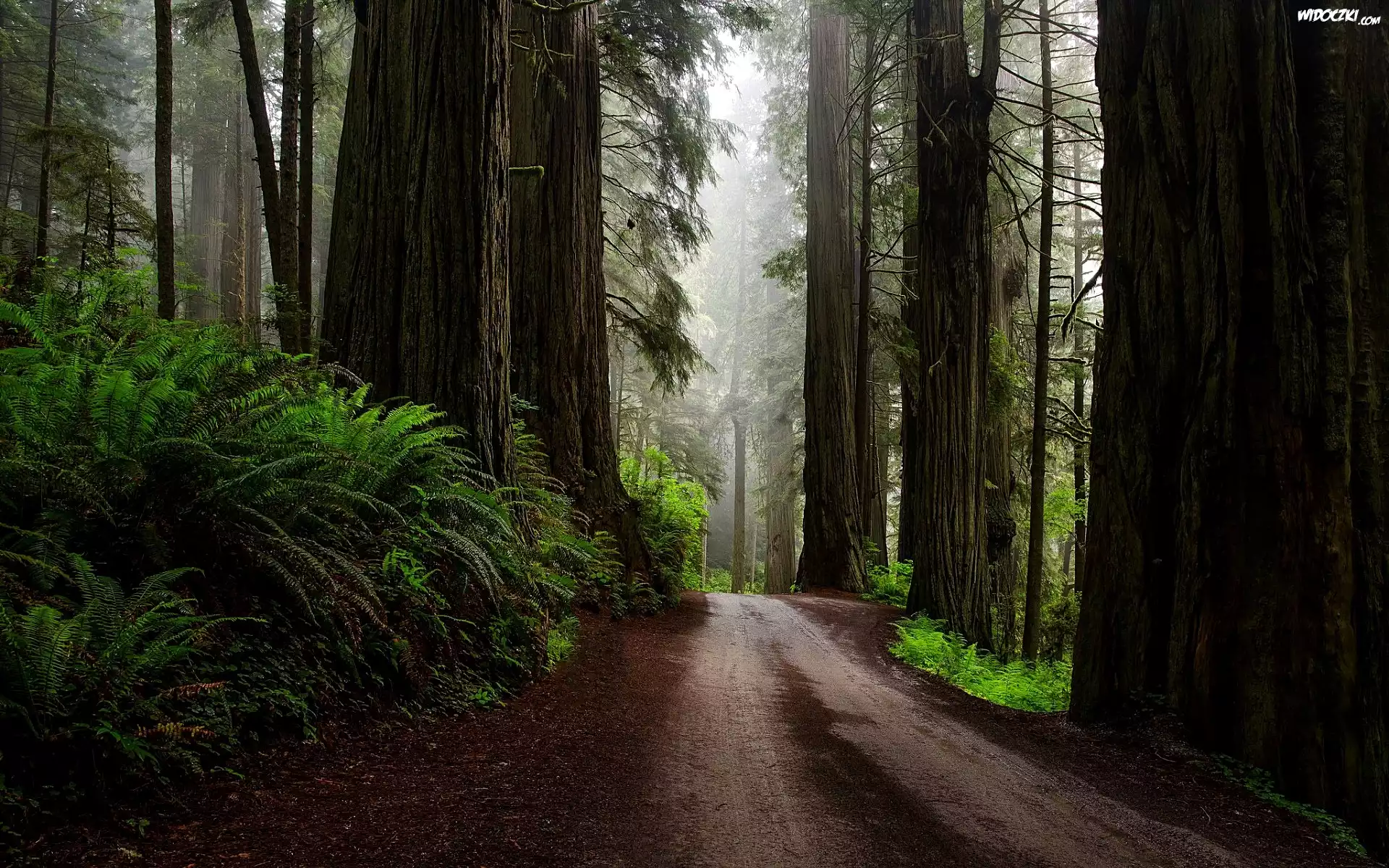 Zdjęcia, Droga, Las, Drzewa, Sekwoje