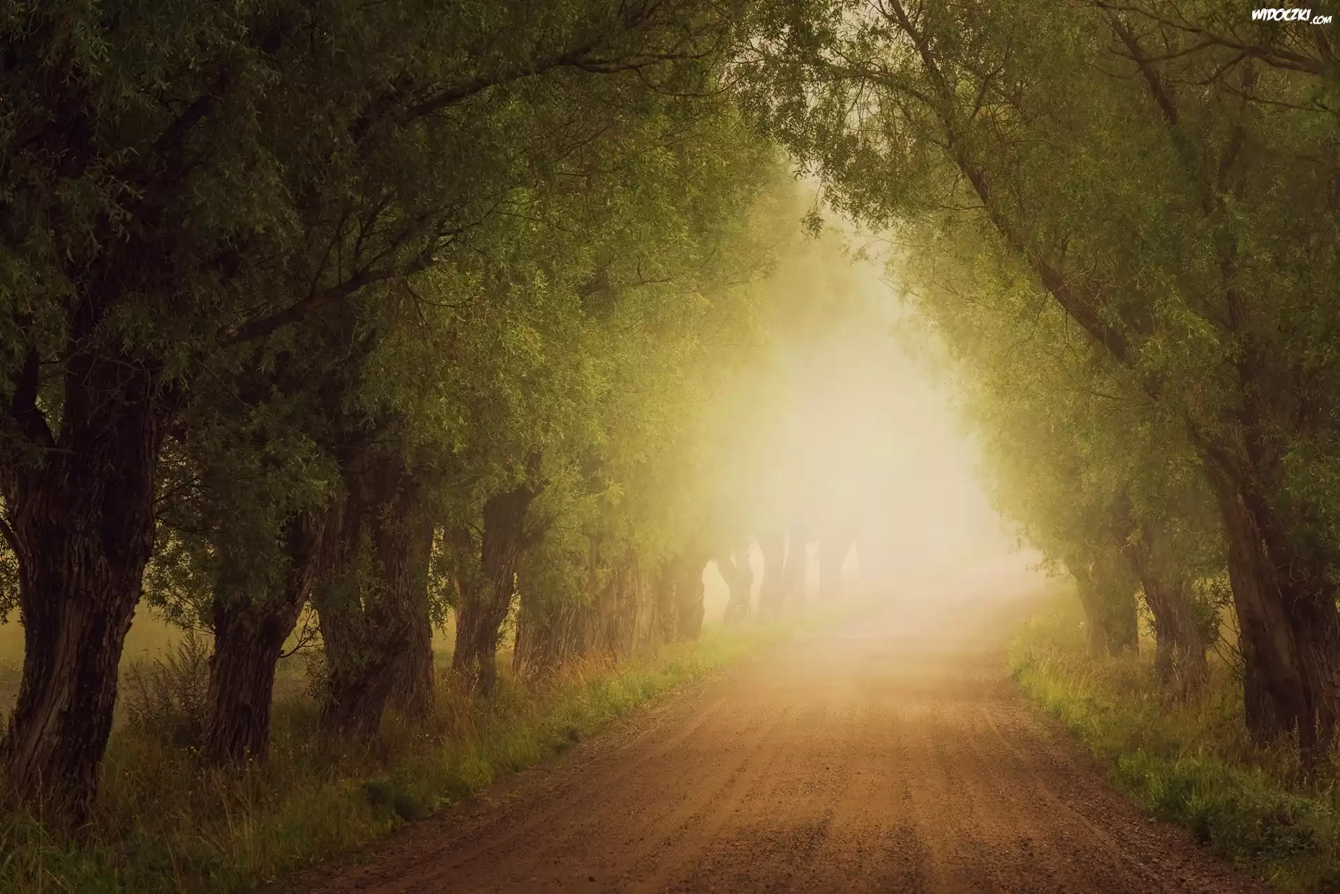 Zdjęcia, Drzewa, Droga, Mgła