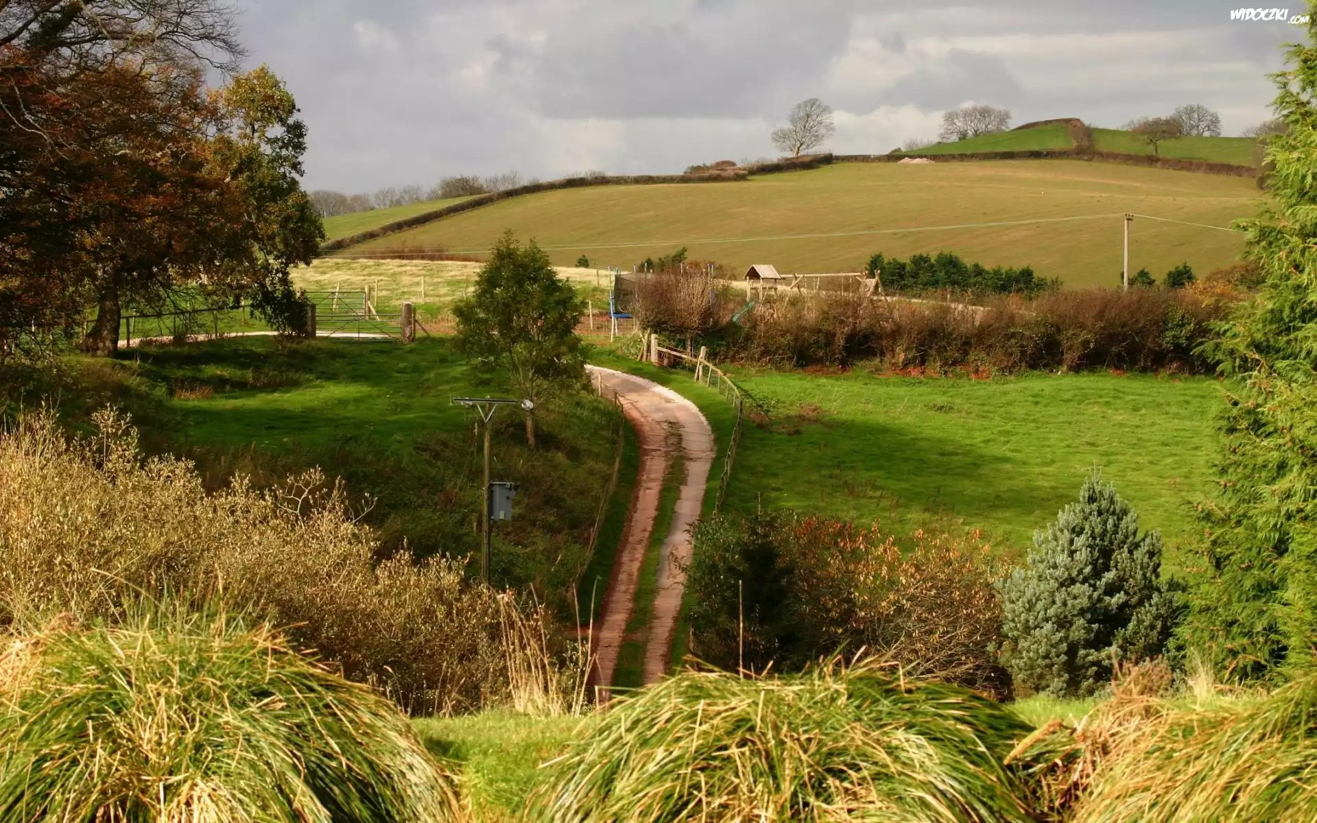 Zdjęcia, Droga, Kępy, Traw, Drzewa, Zagrody