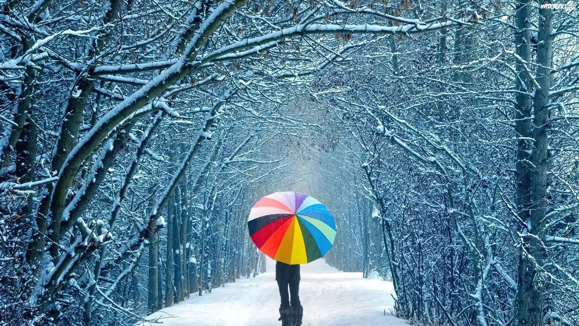 Zdjęcia, Droga, Śnieg, Dziewczyna, Parasol
