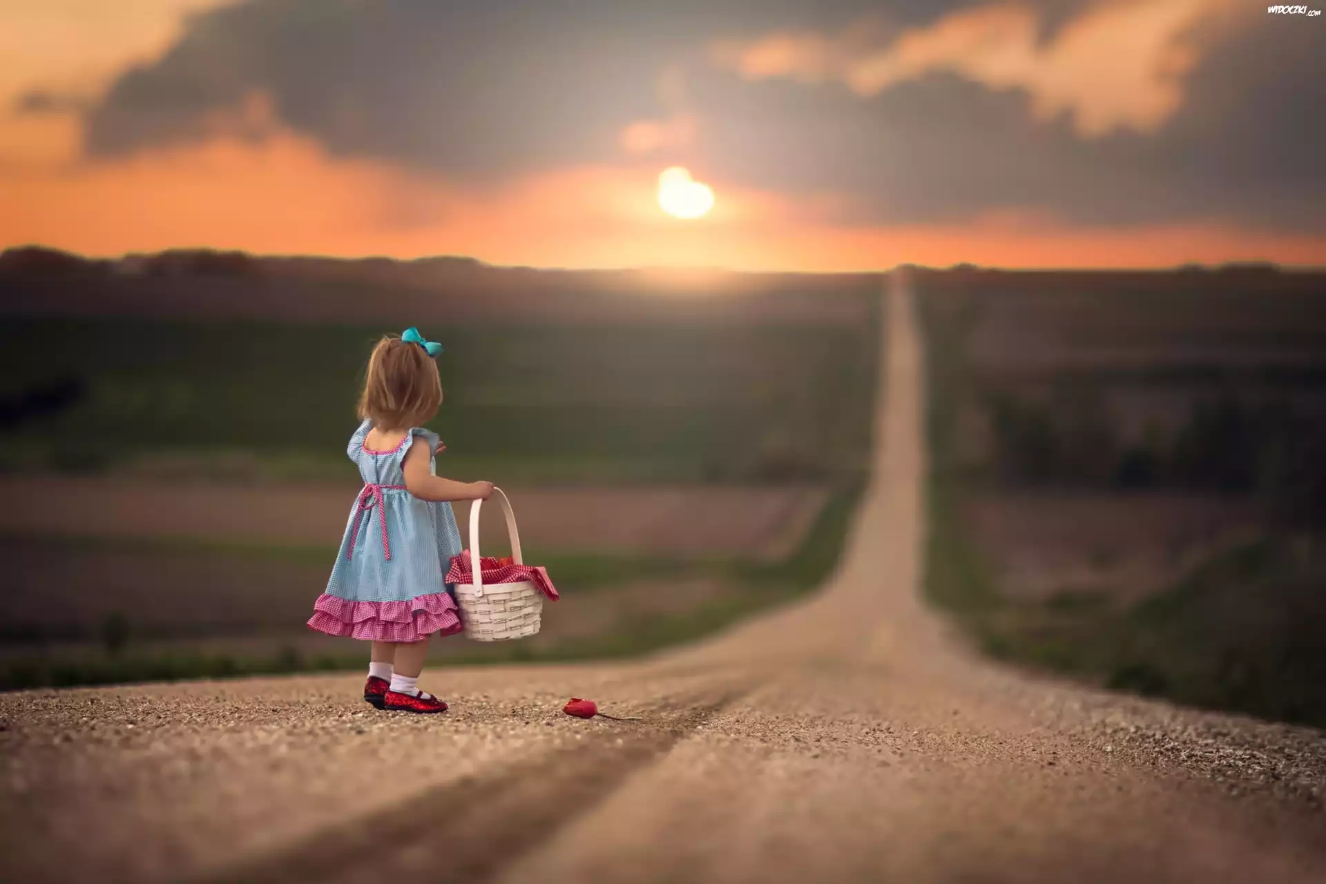 Zdjęcia, Droga, Zachód, Słońca, Dziewczynka, Koszyczek