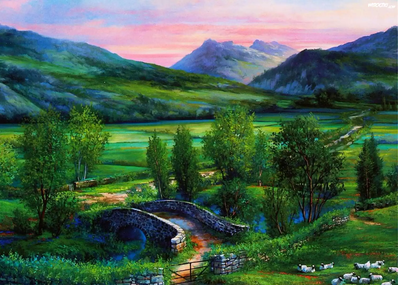 Zdjęcia, Łąka, Góry, Droga, Mostek