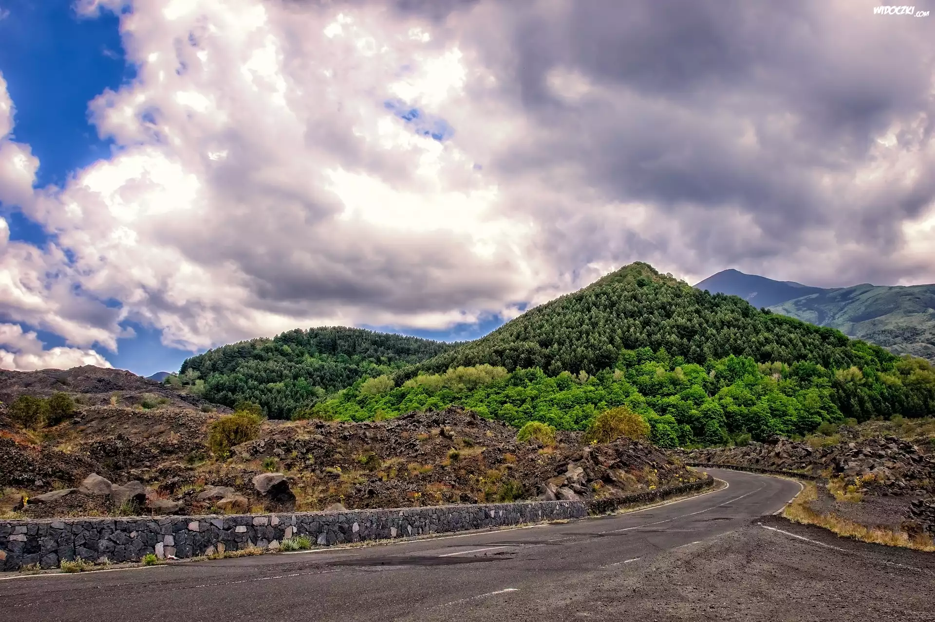 Zdjęcia, Droga, Kamienie, Drzewa, Góry, Wzgórza