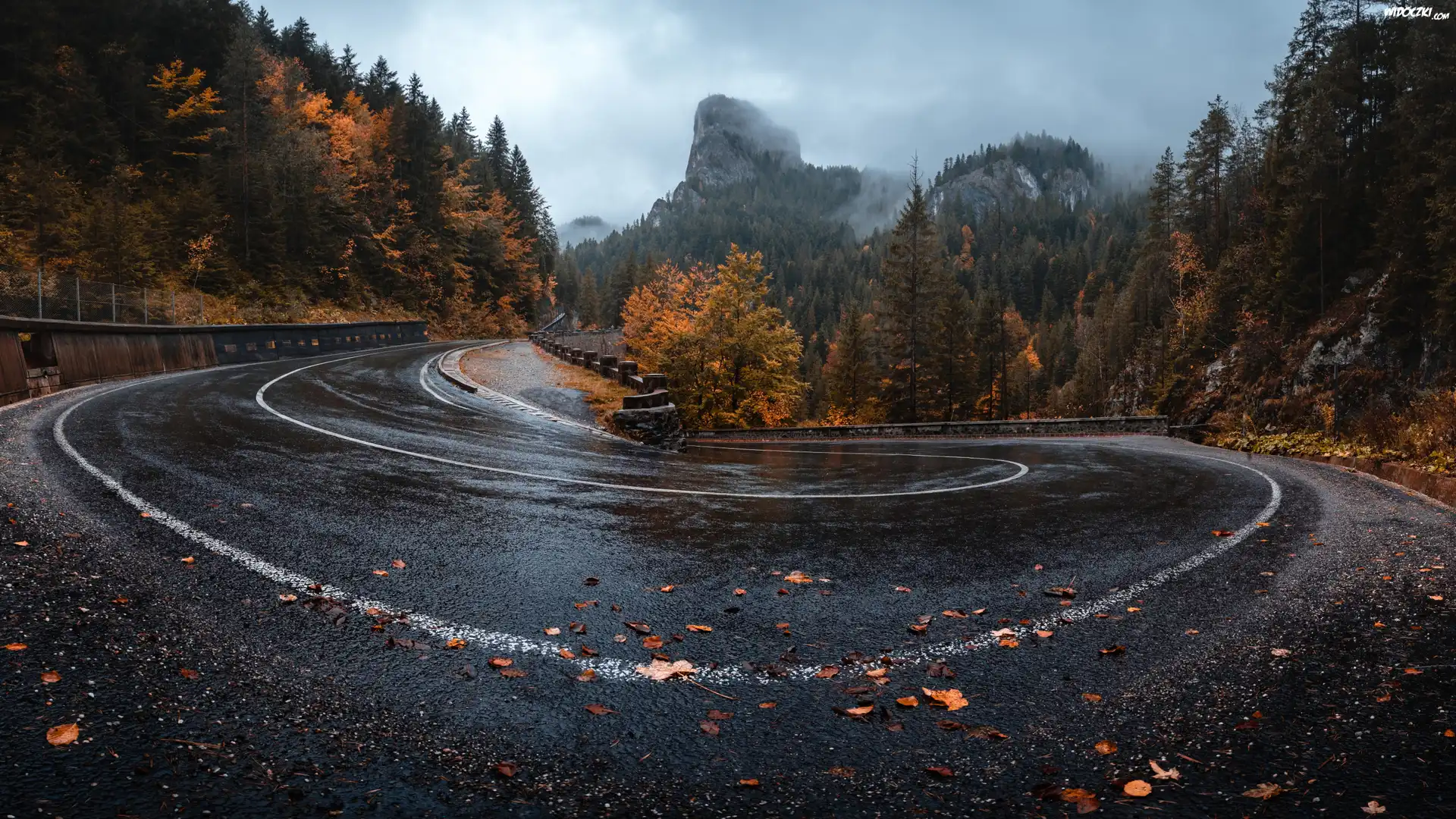 Zdjęcia, Droga, Zakręt, Drzewa, Góry, Jesień