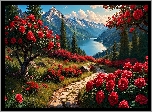 Zdjęcia, Róże, Droga, Góry, AI, Jezioro