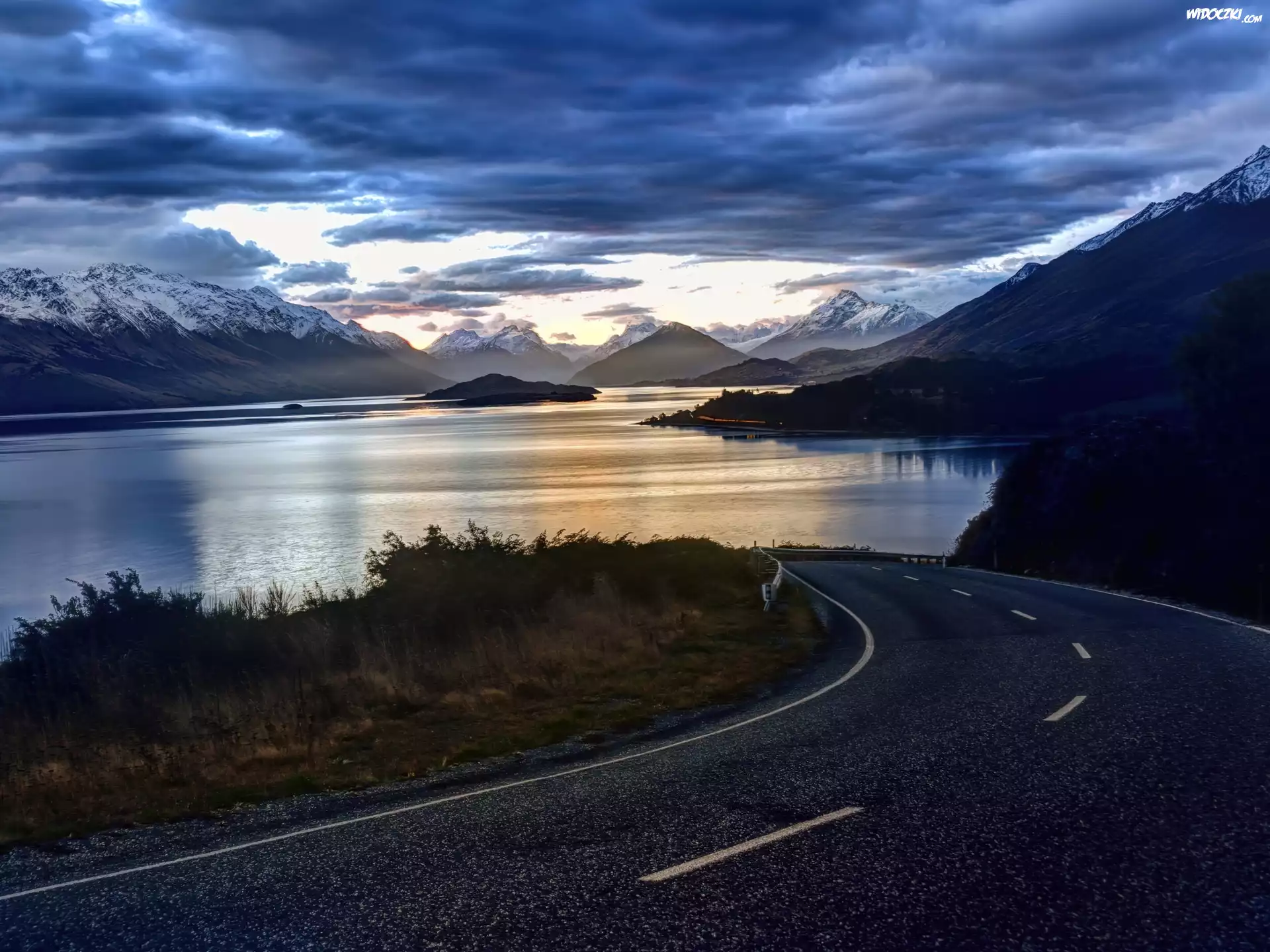Zdjęcia, Droga, Jezioro, Góry, Chmury