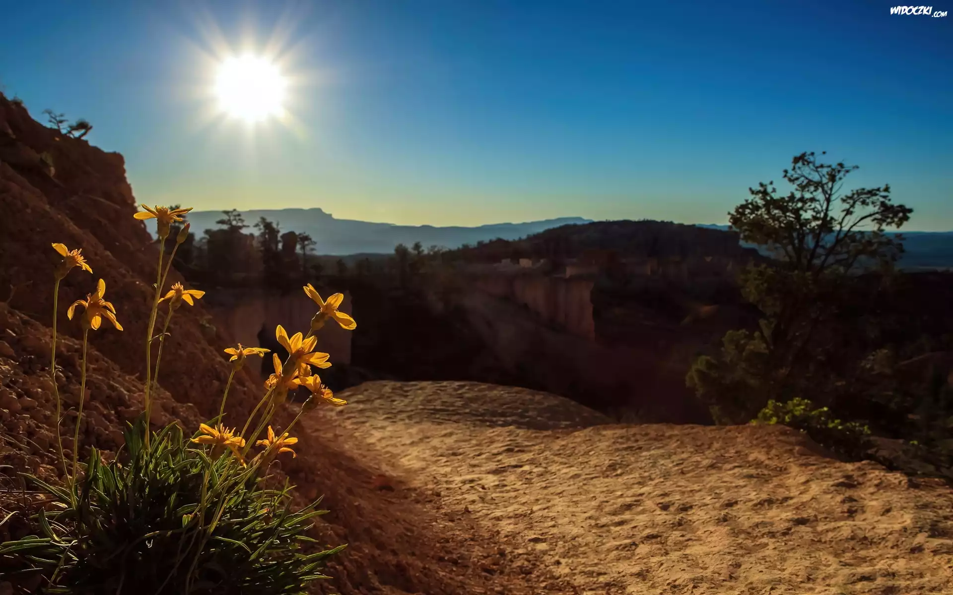 Zdjęcia, Droga, Promienie, Słońca, Góry, Kwiaty
