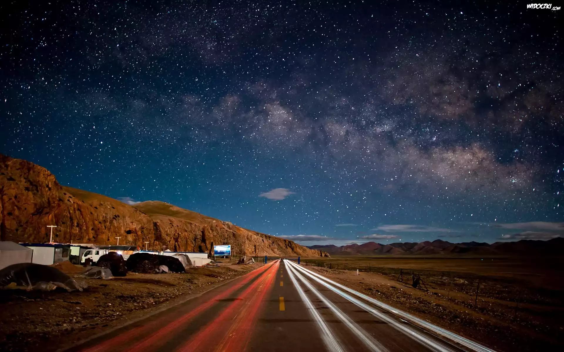 Zdjęcia, Droga, Pustynia, Góry, Gwiaździste, Niebo
