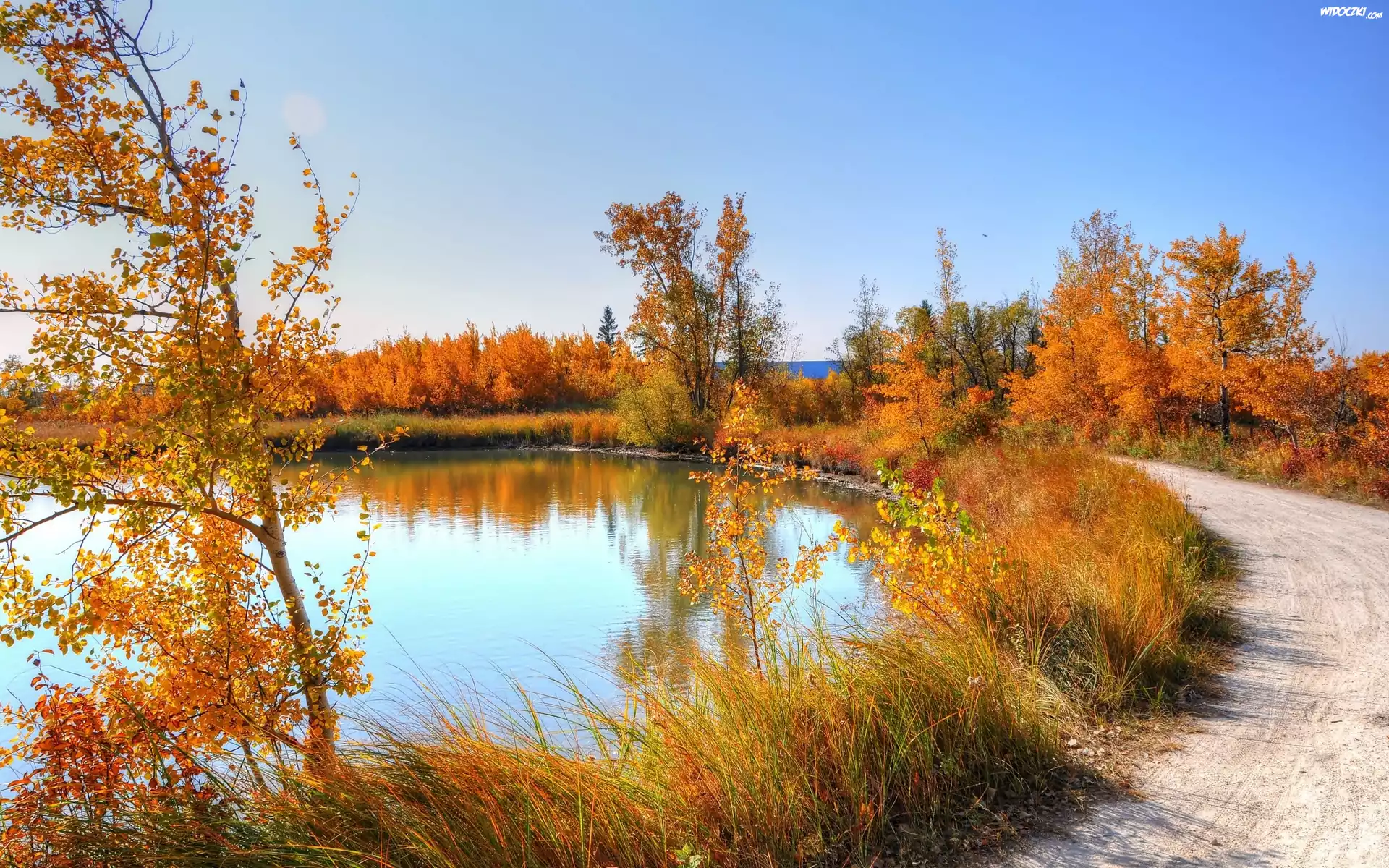 Zdjęcia, Jesień, Droga, Staw