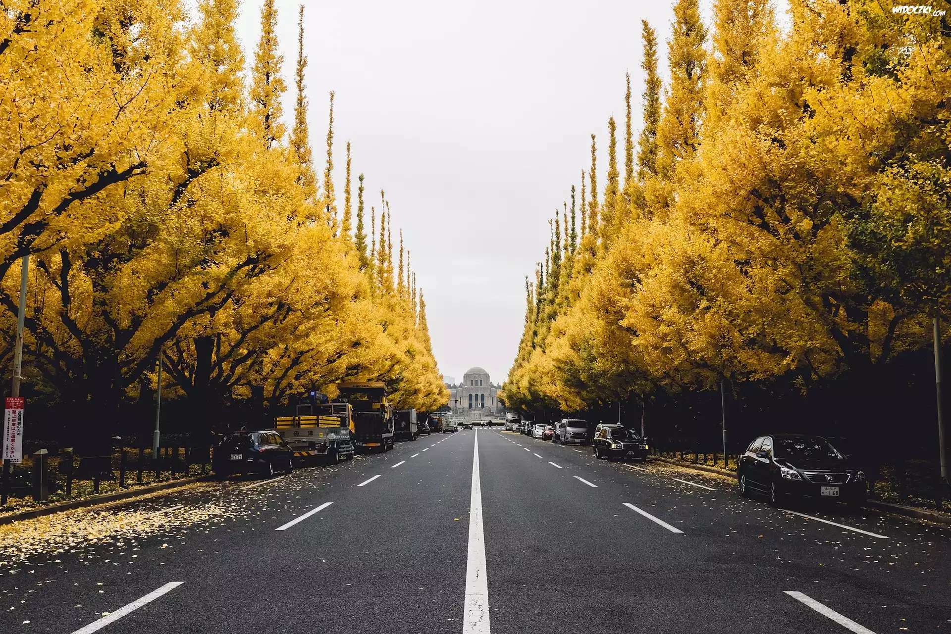 Droga, Ulica, Samochody, Jesienne, Drzewa