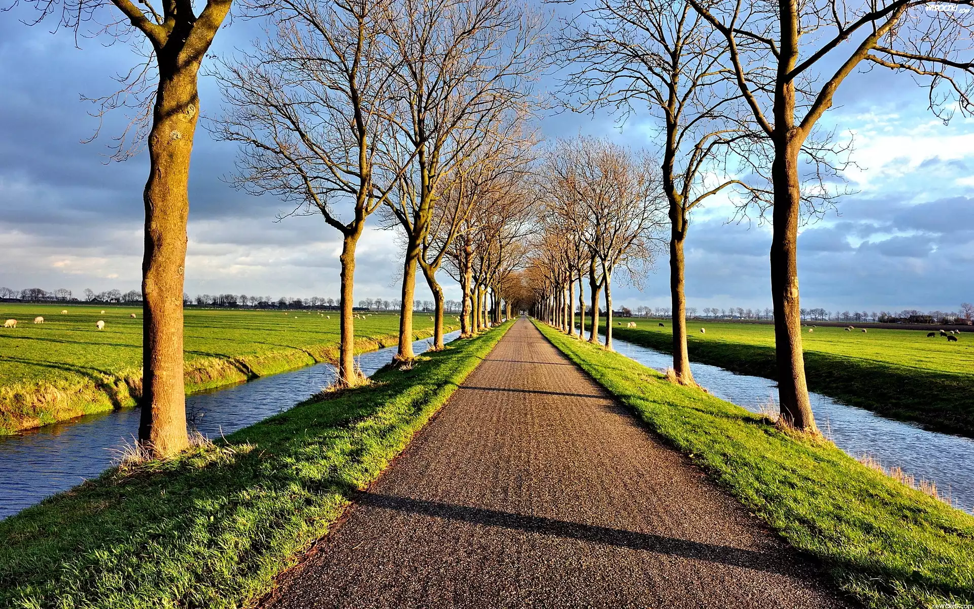 Zdjęcia, Droga, Drzewa, Kanał, Łąki