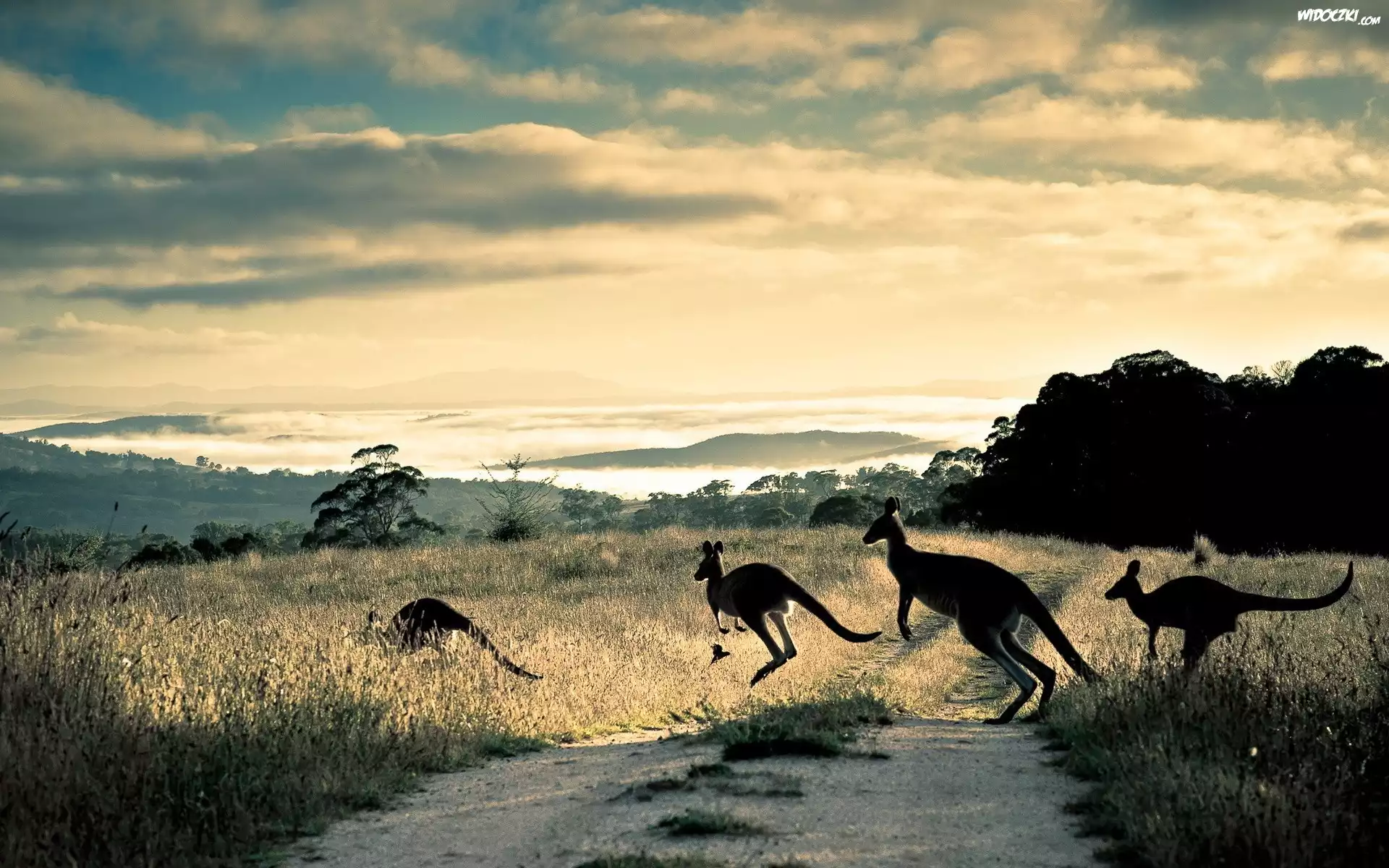 Zdjęcia, Kangury, Droga, Chmury