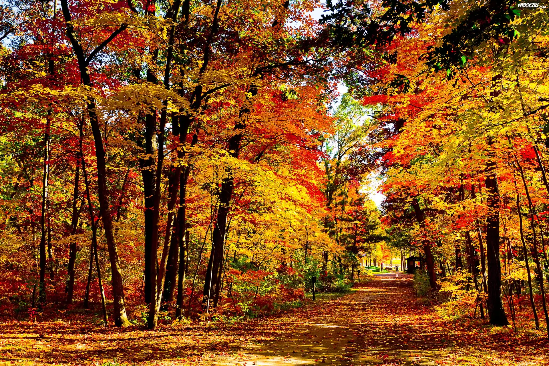 Zdjęcia, Droga, Las, Kolorowe, Liście
