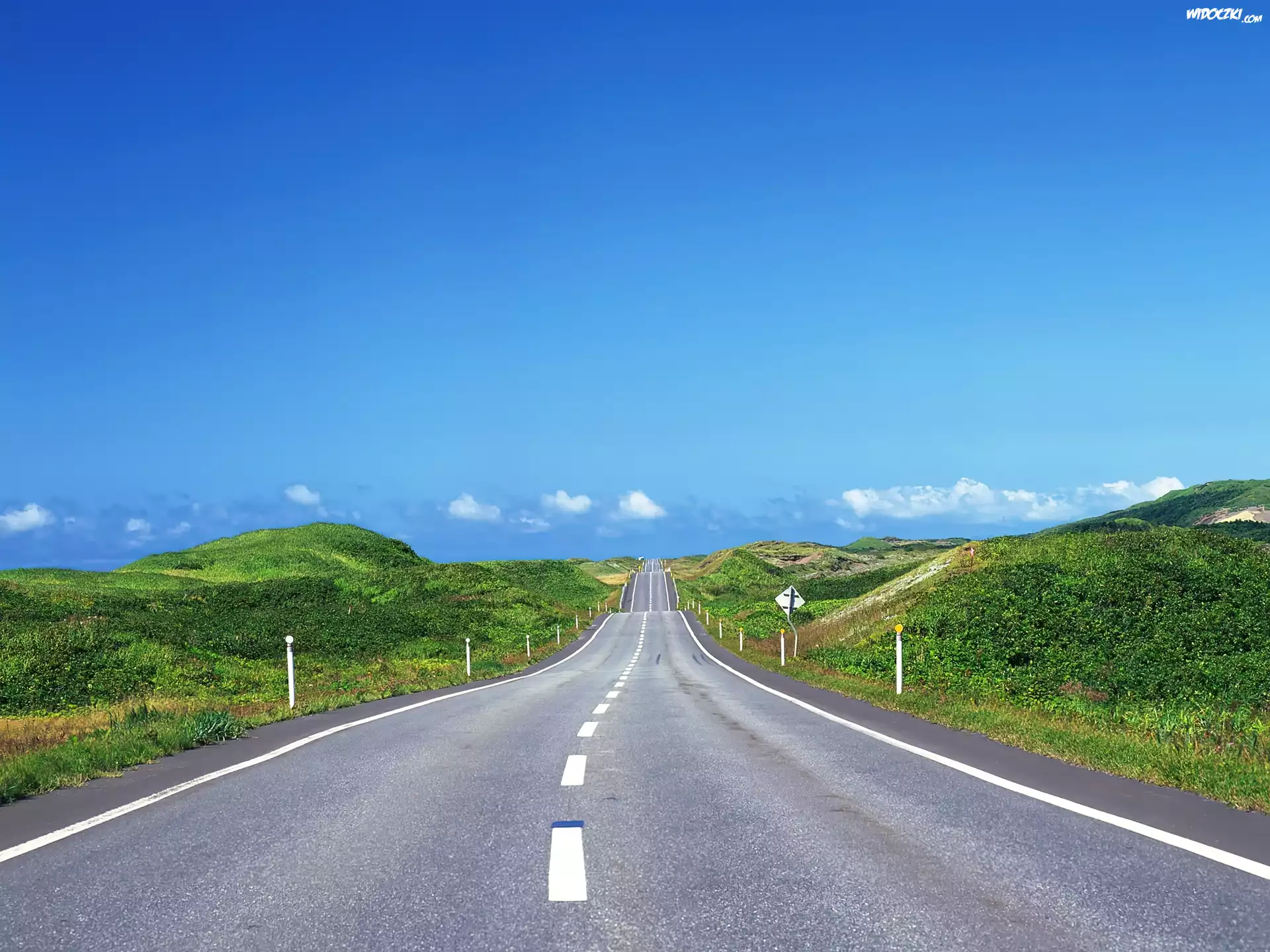 Zdjęcia, Droga, Pagórki, Krzewy, Niebo