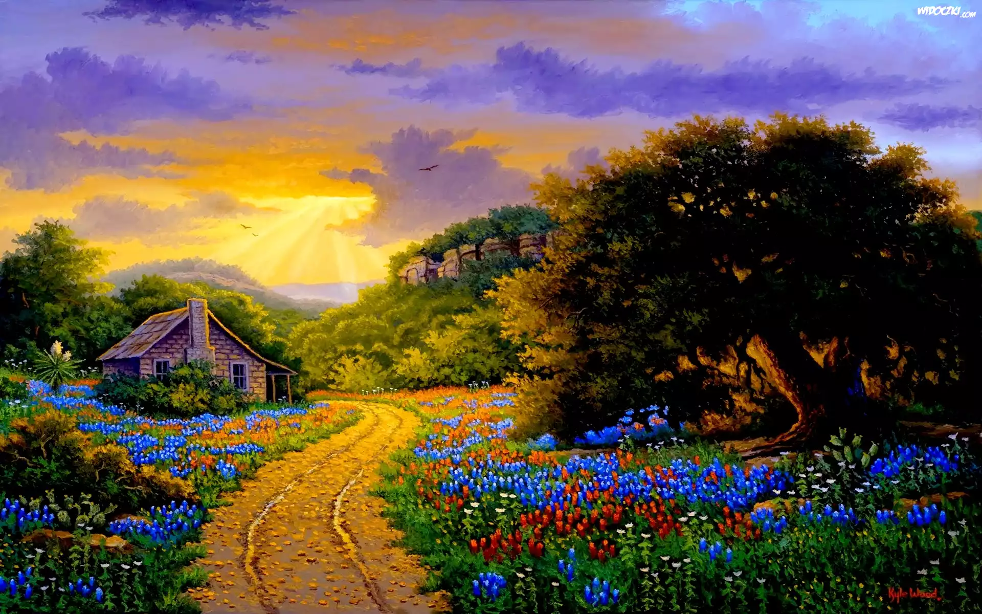 Zdjęcia, Droga, Łąka, Kwiaty, Dom