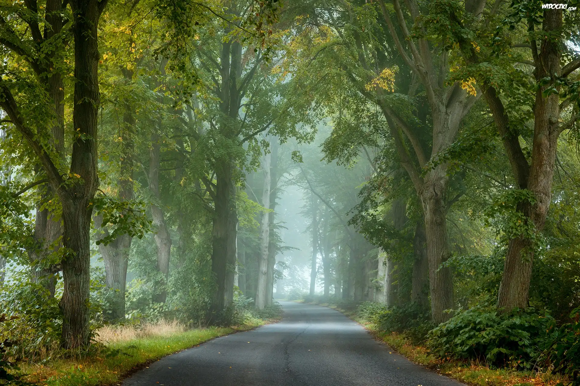 Zdjęcia, Droga, Zielone, Drzewa, Las, Mgła