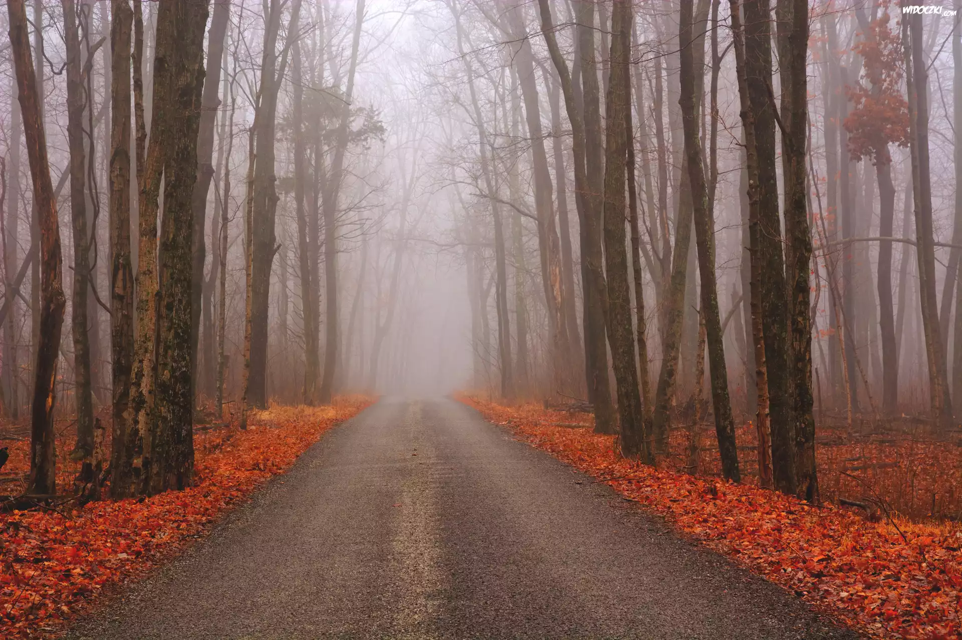 Zdjęcia, Droga, Jesień, Las, Mgła