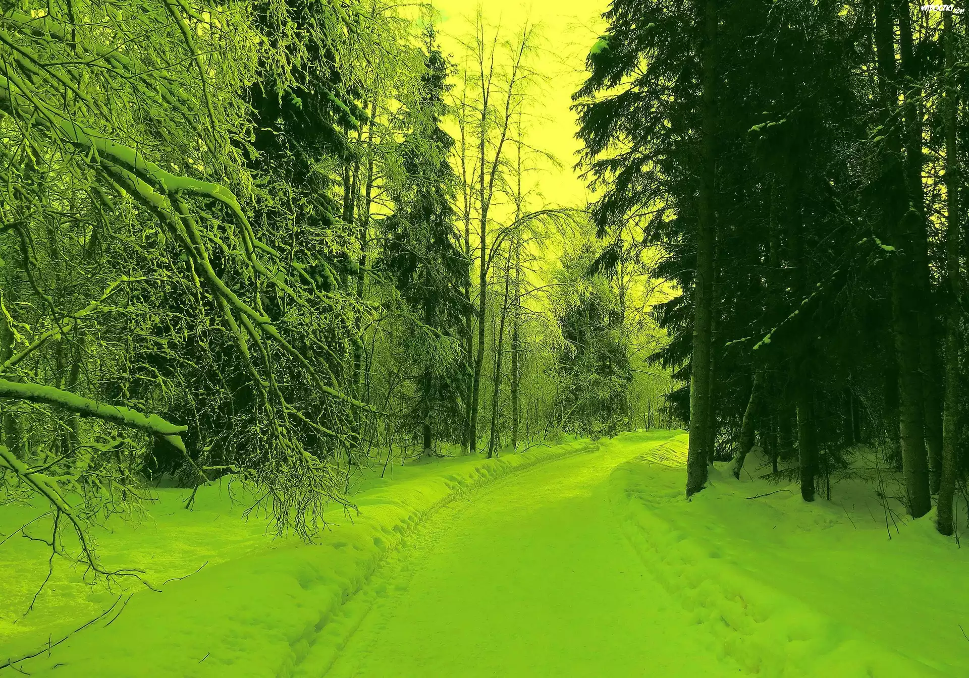 Zdjęcia, Las, Droga, Śnieg
