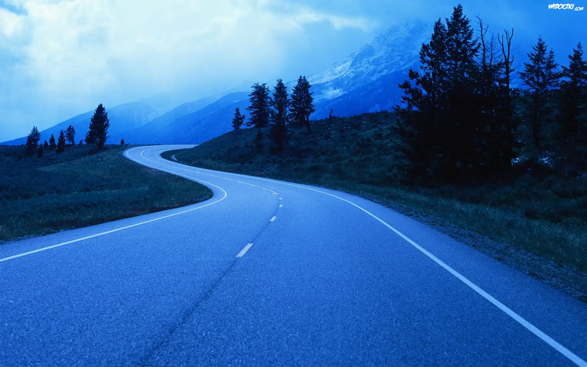 Droga, Góry, Lasy, Chmury