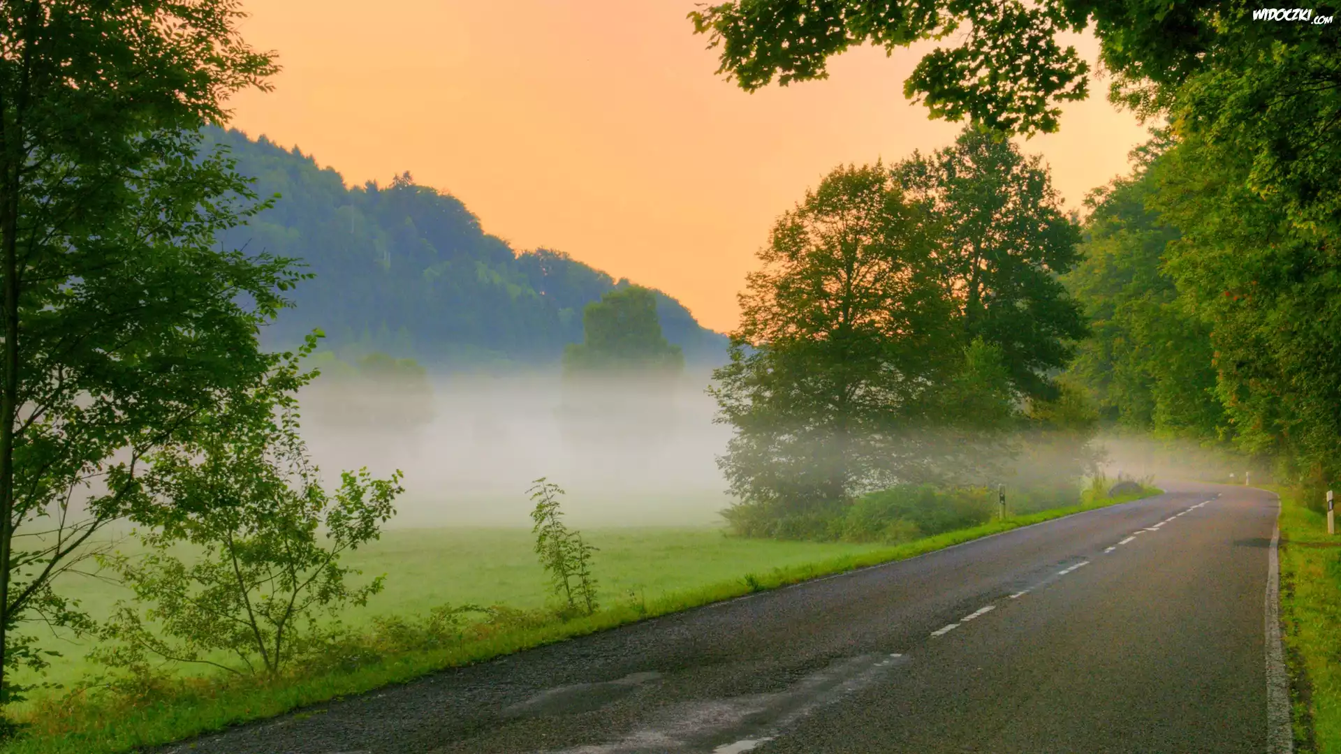 Zdjęcia, Droga, Góry, Lasy, Mgła