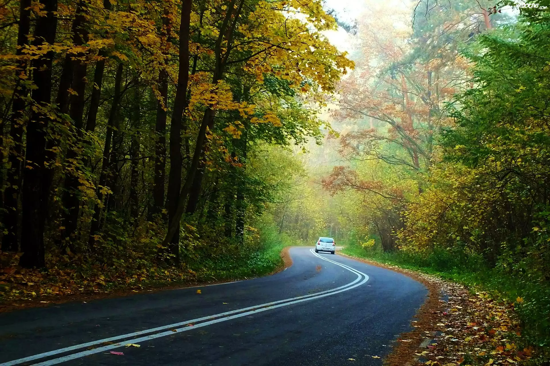 Zdjęcia, Droga, Drzewa, Liście, Samochód