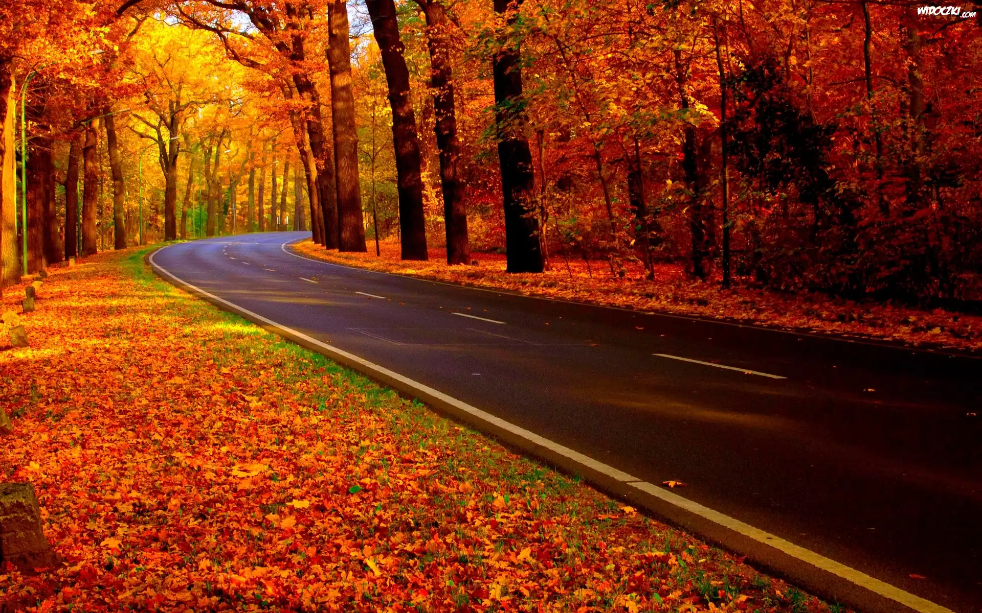 Droga, Las, Kolorowe, Liście, Jesień